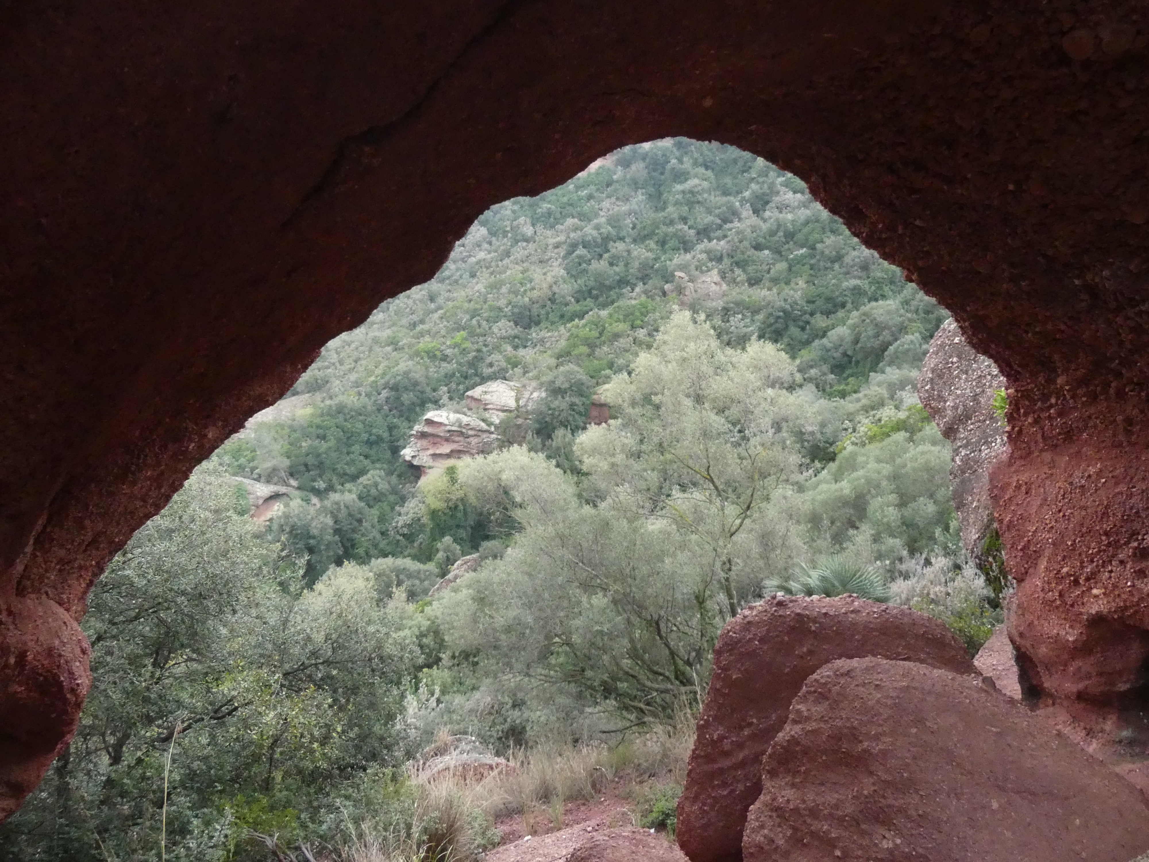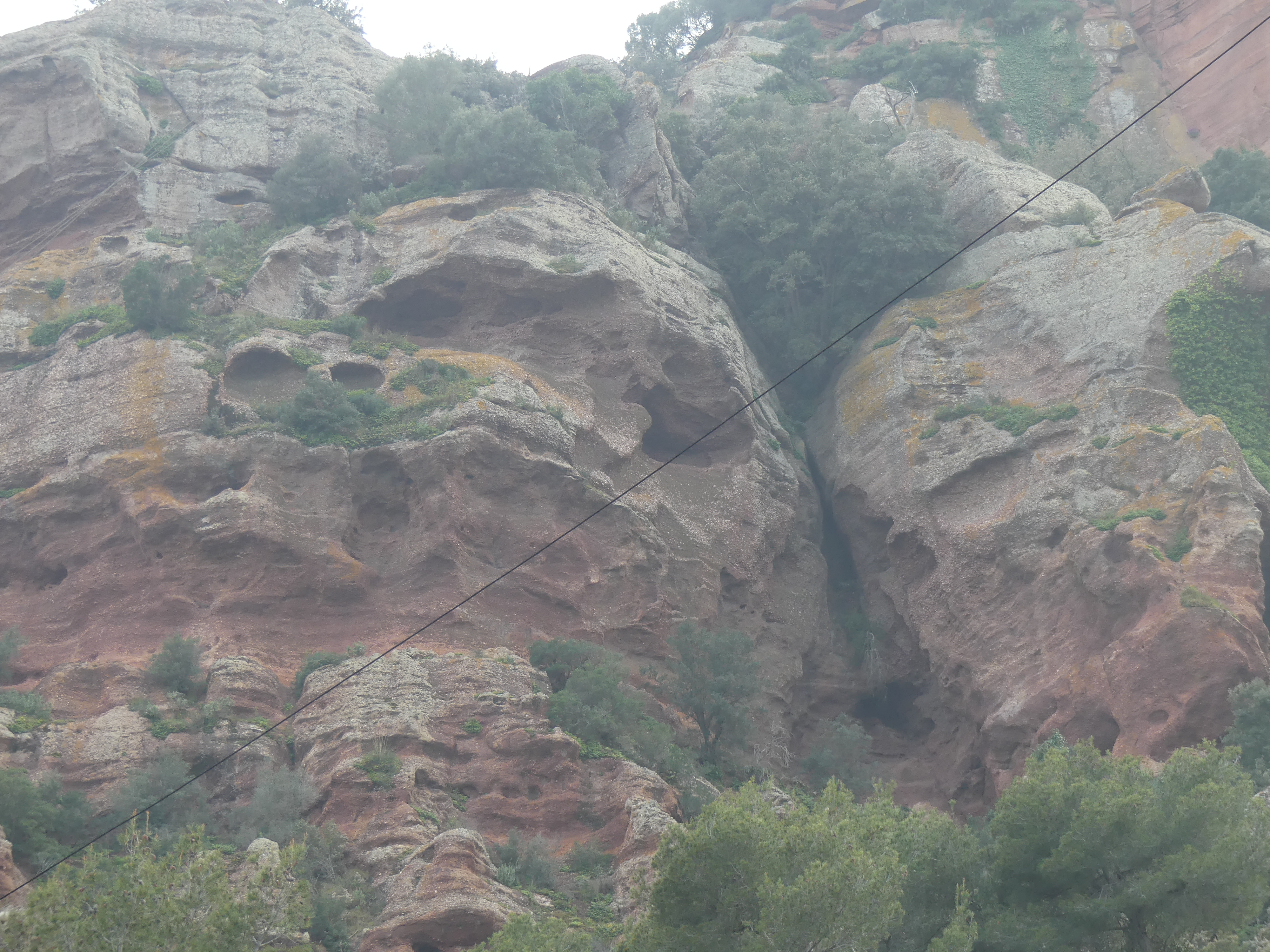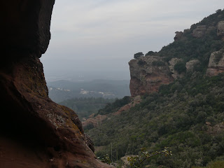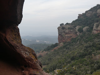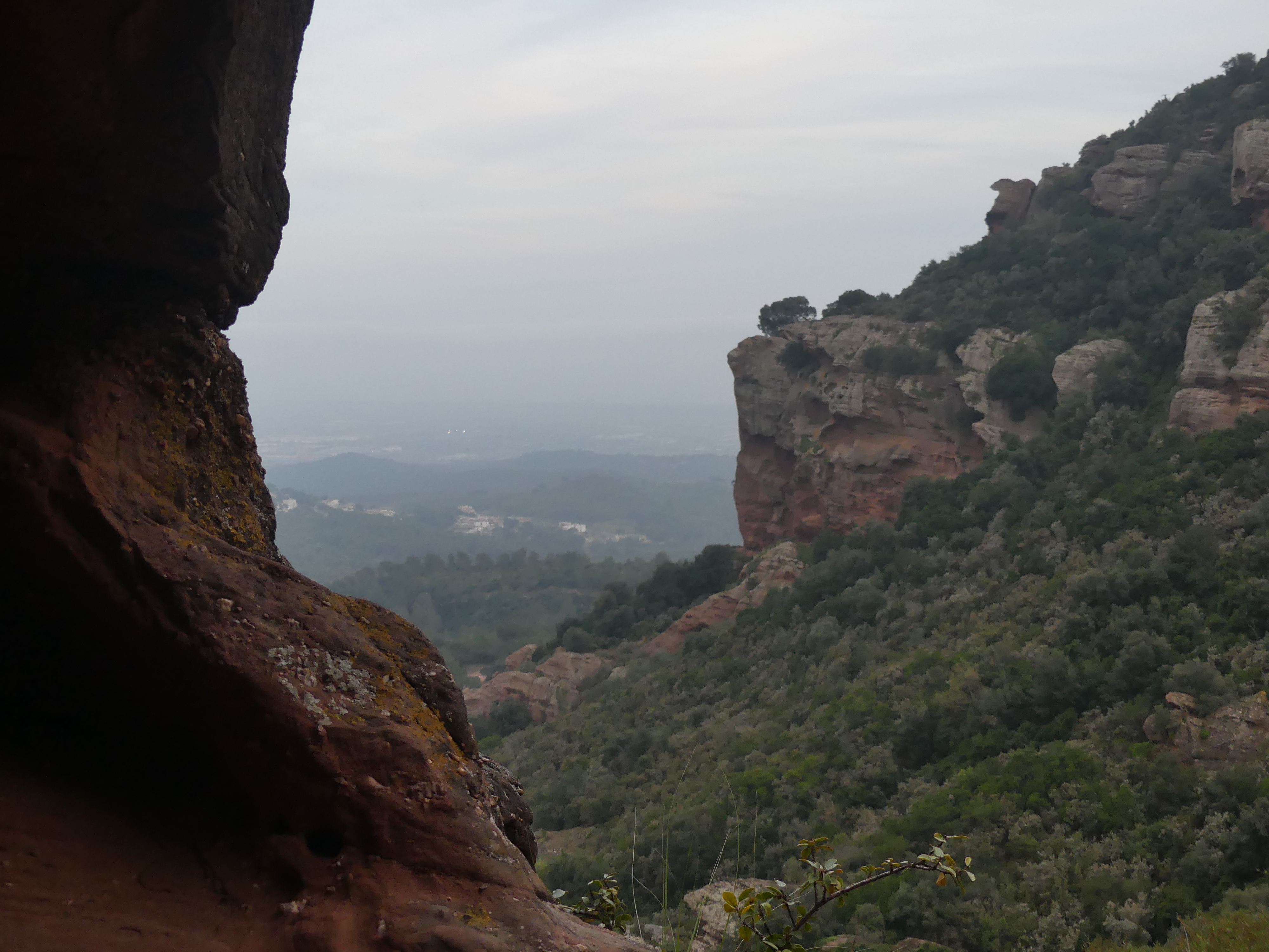 Un ultimo esfuerzo y ya estamos en el interior de la cueva donde nos encontramos la imagen de la virgen de Bruguers, así como diferentes objetos, ofrendas que la gente ha ido dejando. Los miramos pero no tocamos!!! y si que disfrutamos de las formas curiosas que ha hecho la erosión en el interior de la cueva y de las vistas que tenemos desde allí.