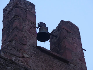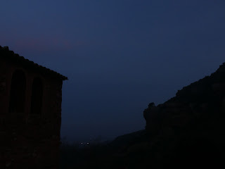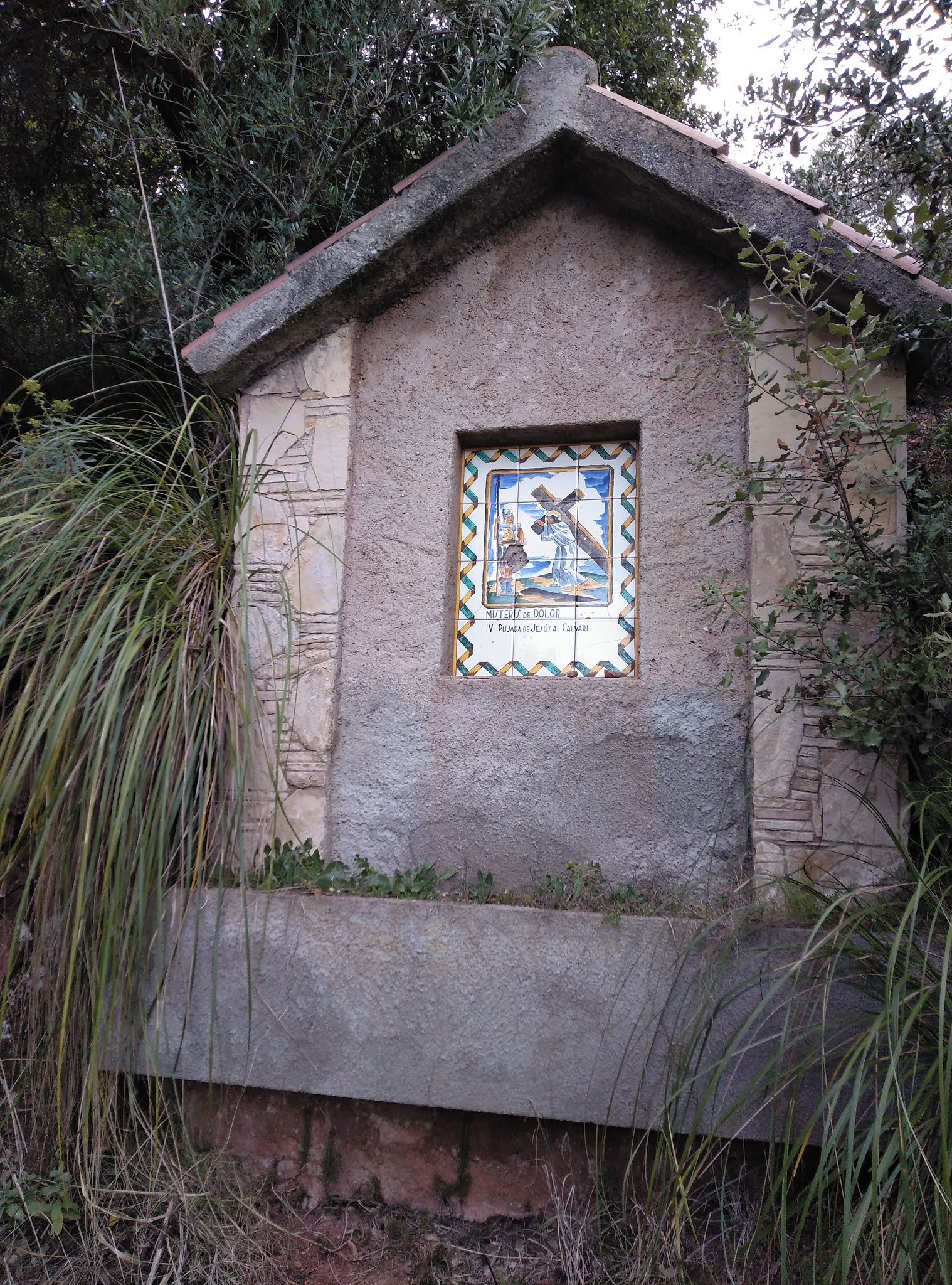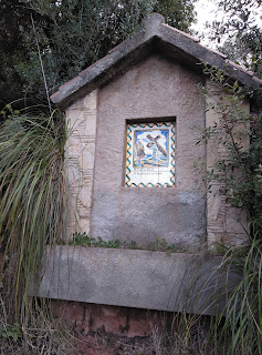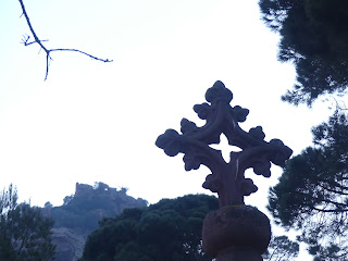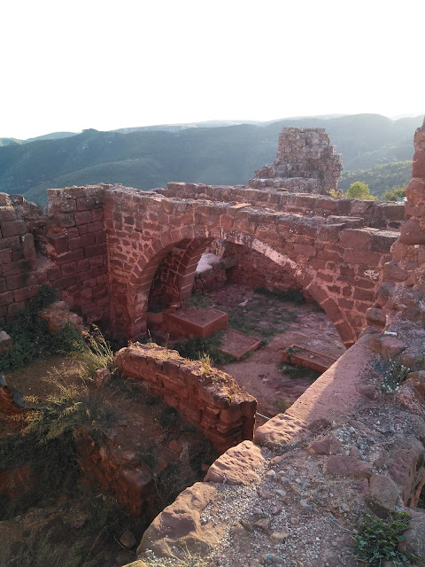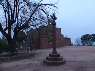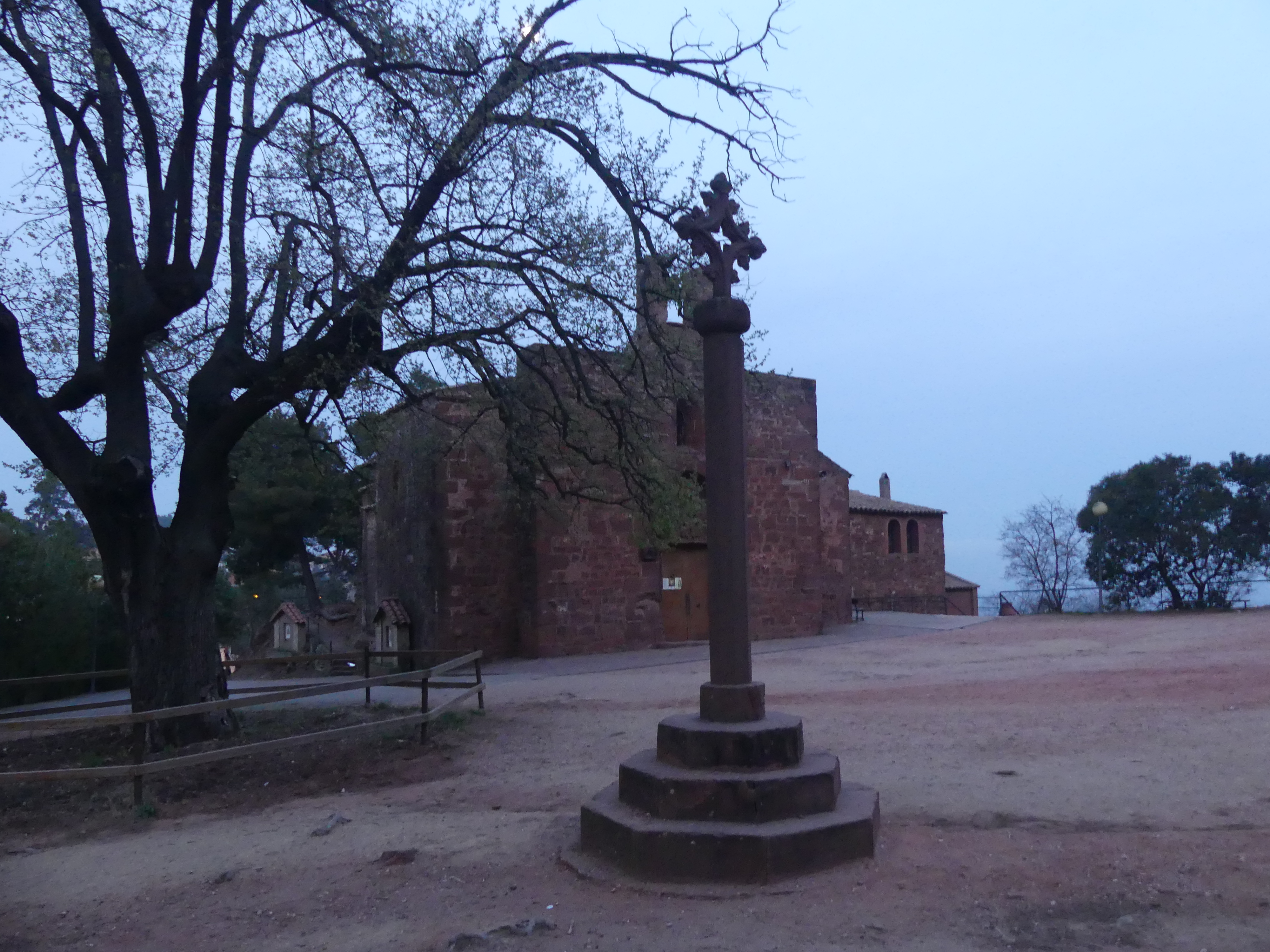 Pasamos las ruinas de la humilde capilla construida sobre la colina en donde está el risco, llama poderosamente la atención, una cueva colgada que hay en una colina a la izquierda del castillo al pie de una cruz de hierro, es la cueva de la Virgen de Bruguers.