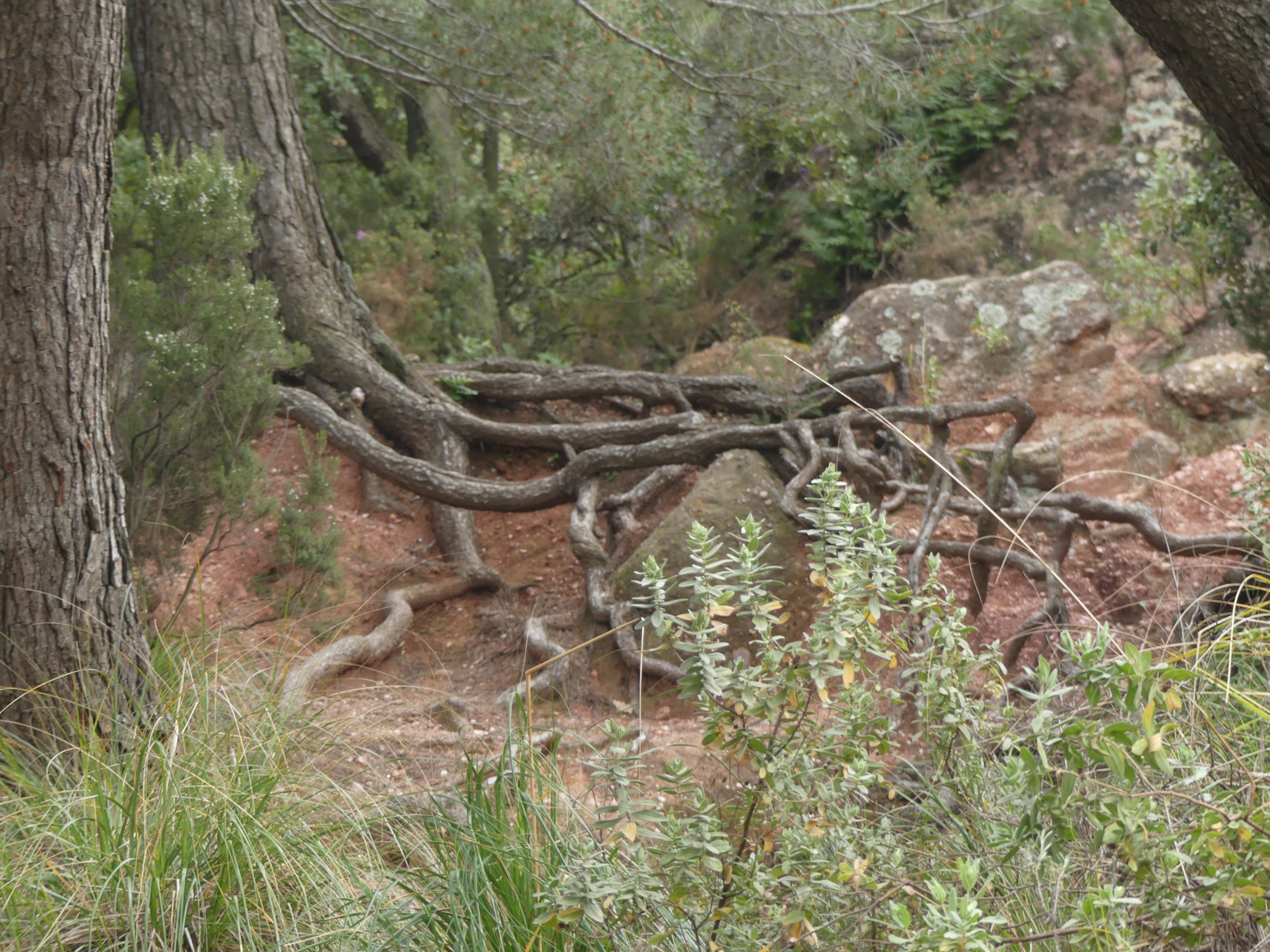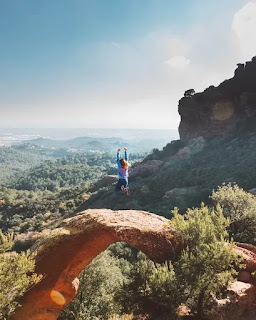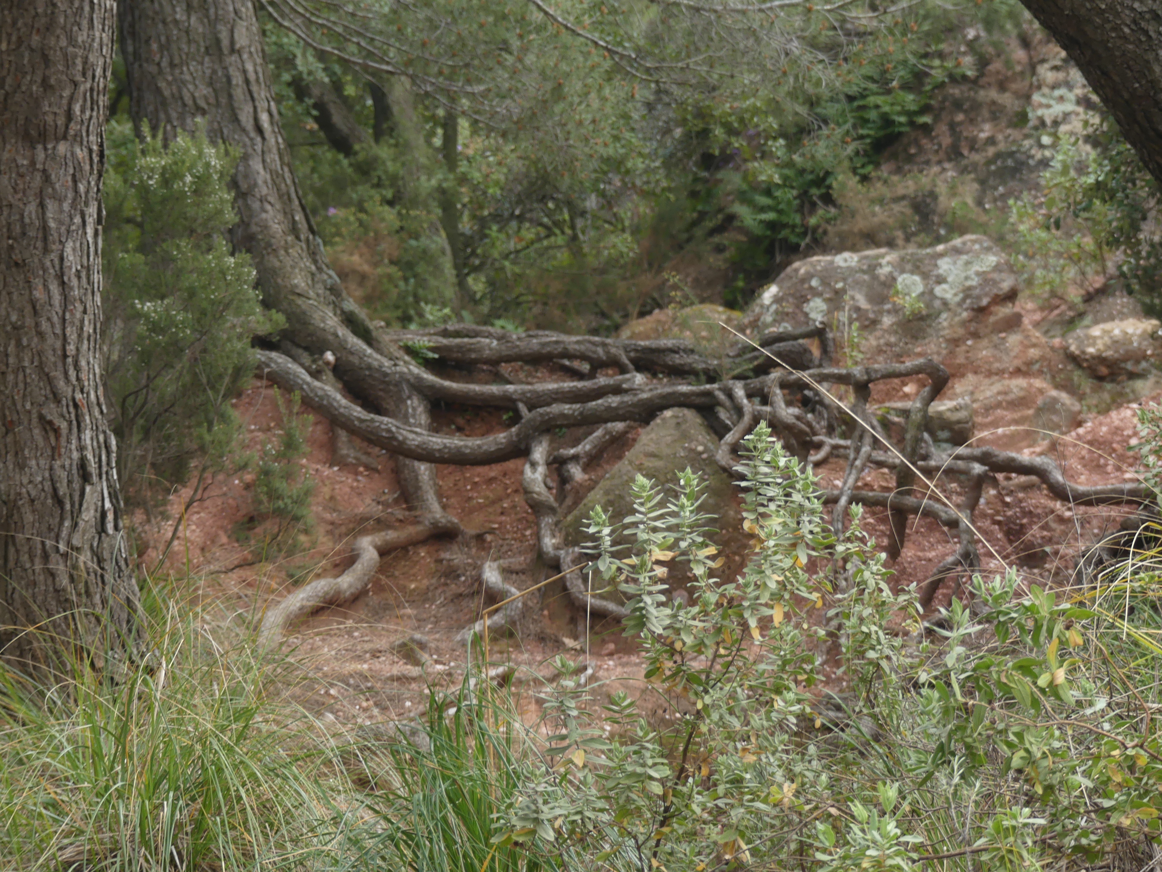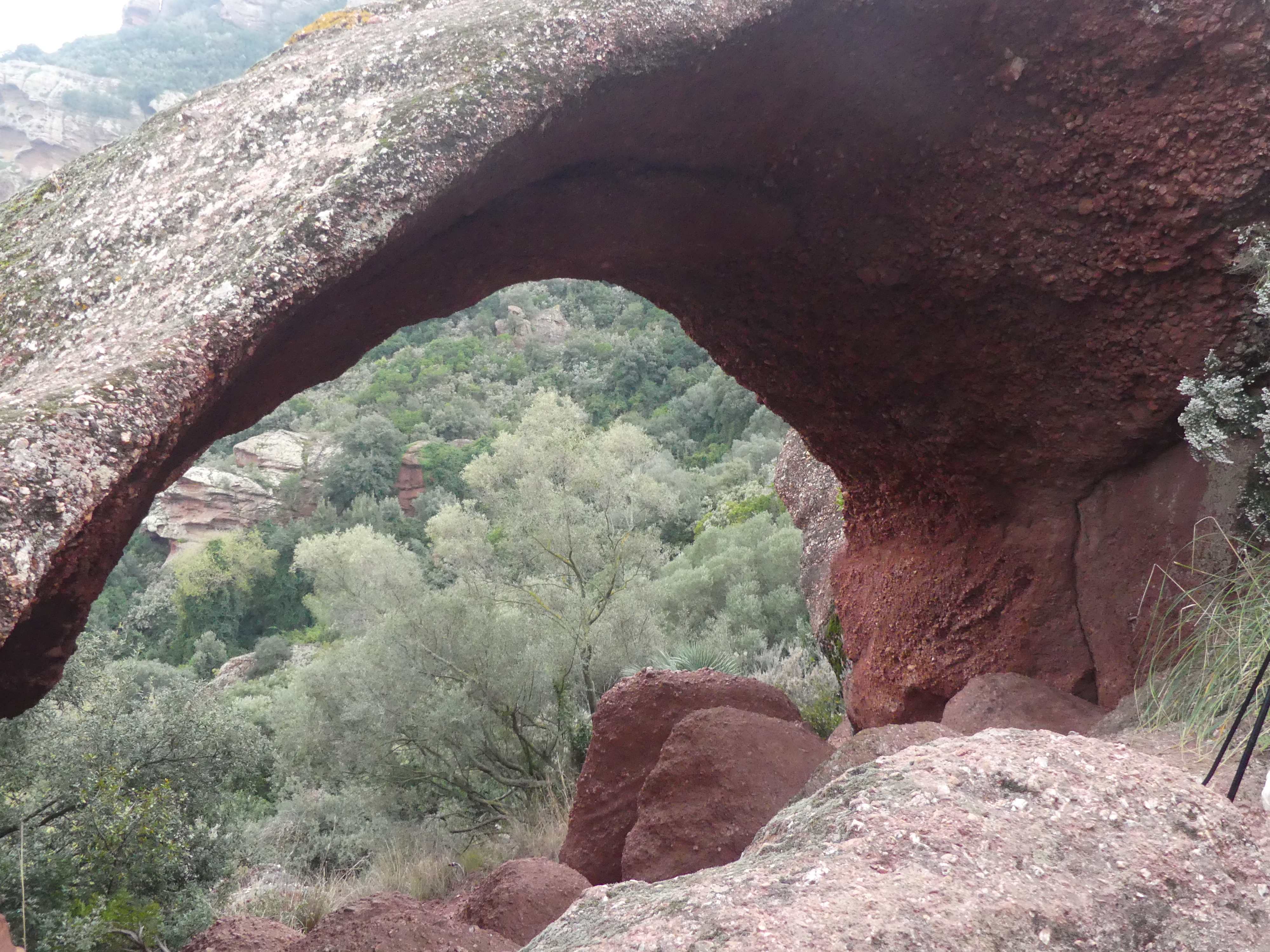 Ascendemos en dirección hacia la Roca Foradada, el camino es un poco abrupto y a pocos metros nos encontramos la curiosa y enorme Roca Foradada, en forma de arco, a la que podemos acceder a su parte superior, por un lateral.