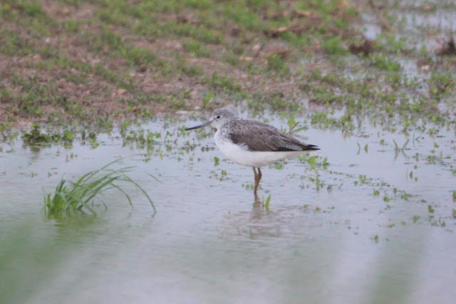 Los altos niveles de agua que mantiene el estanque obliga a las limícolas en paso a detenerse en los campos encharcados de las cercanías. 04/11/2018. (C) Quim Minoves