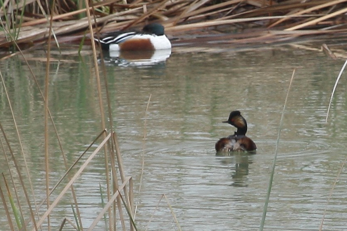 Aunque hace años criaron algunas parejas, actualmente el zampullín cuellinegro es de presencia irregular en el estanque de Ivars y Vila-sana. 04/12/2018. (C) Anna Varea & Juan Rodríguez.