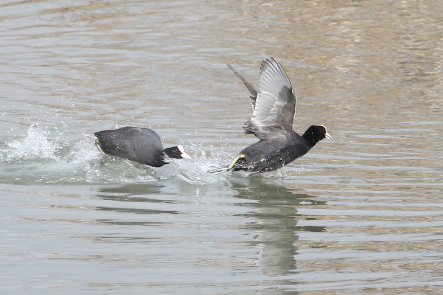 Las persecuciones territoriales de las fochas evidencian que se encuentran en pleno periodo reproductor. 04/12/2018. (C) Anna Varea & Juan Rodríguez.