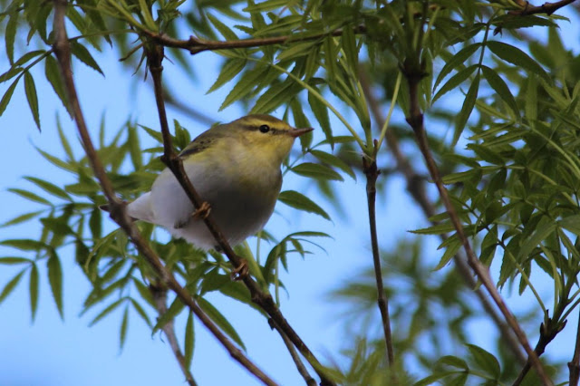 Otro mosquitero que también se detecta en el estanque sólo durante los pasos migratorios es el mosquitero silbador, aunque en este caso es una especie más escasa, presente sobre todo en el paso de primavera. 09/04/2018. (C) Quim Minoves.