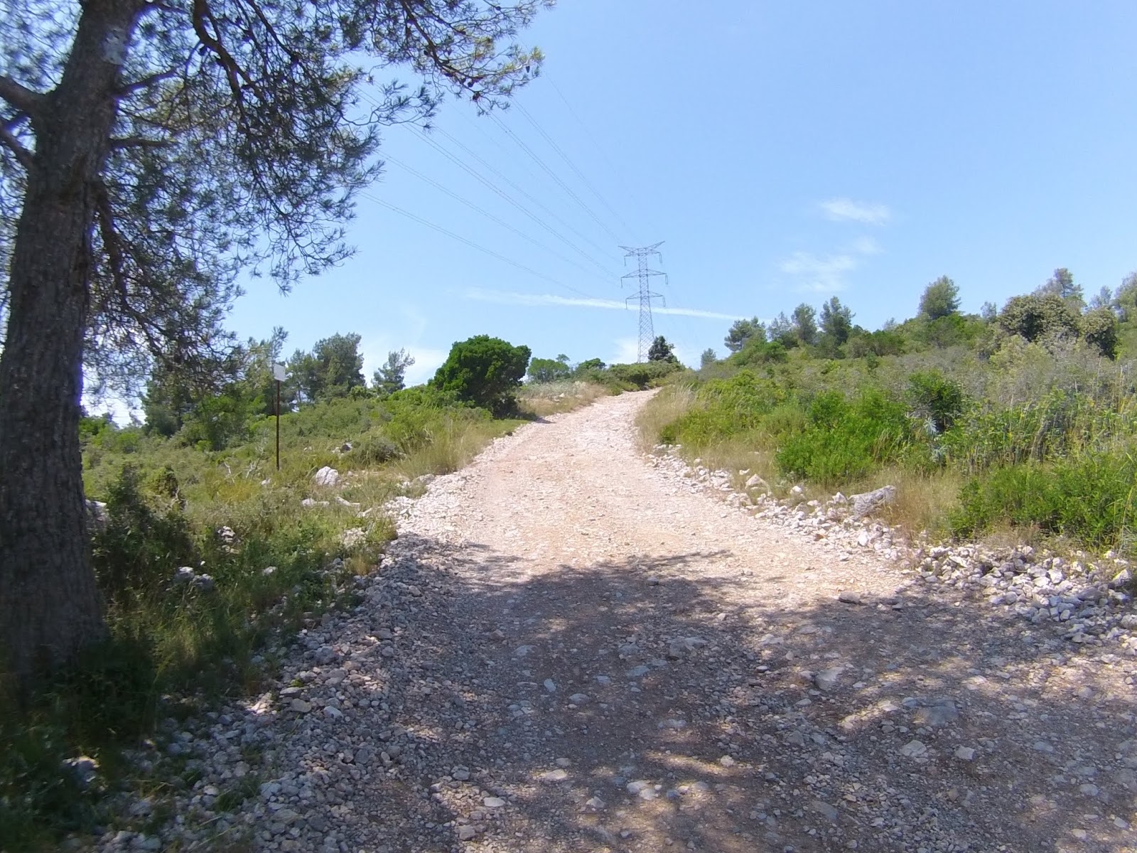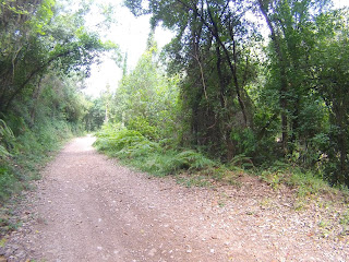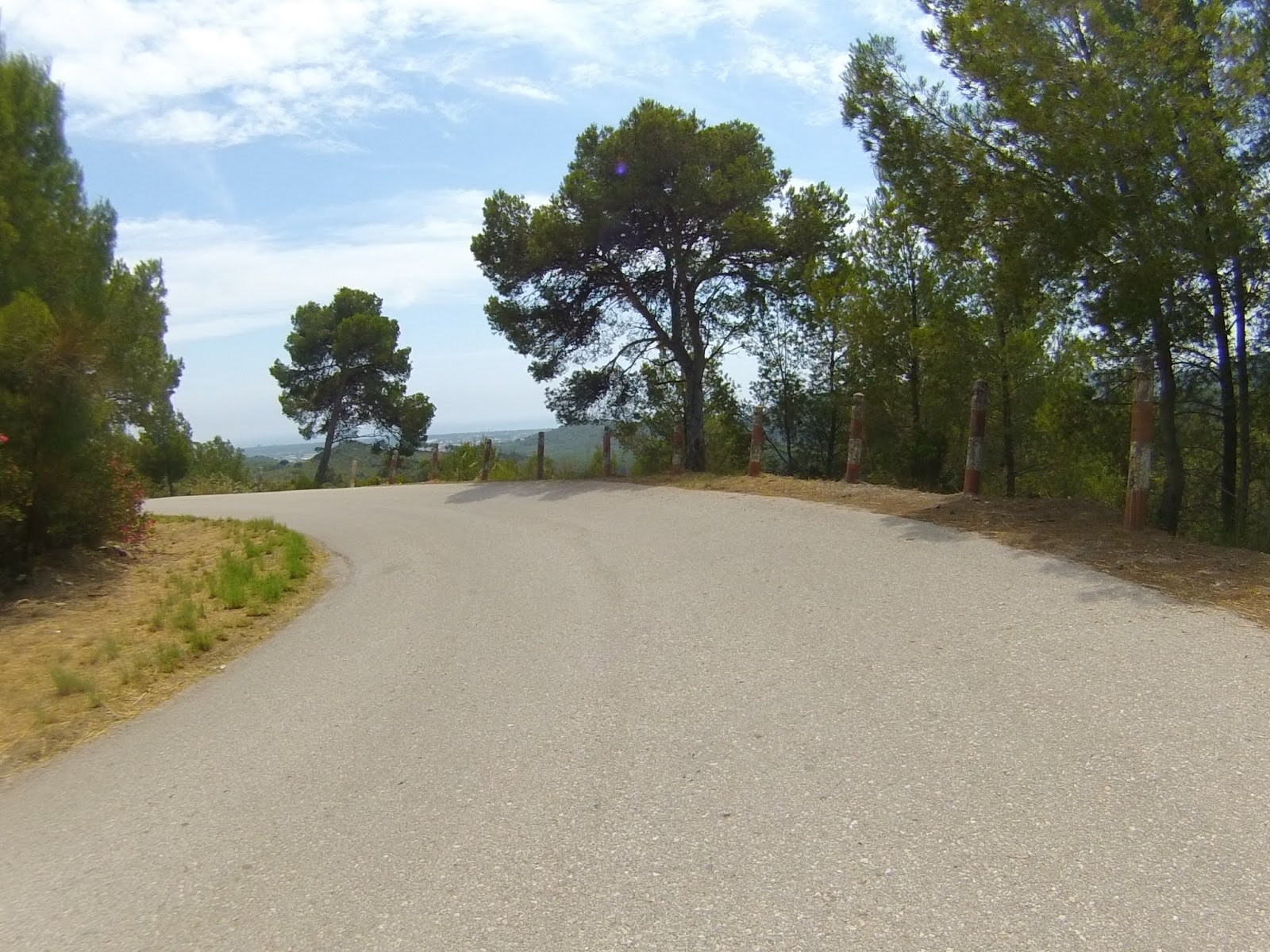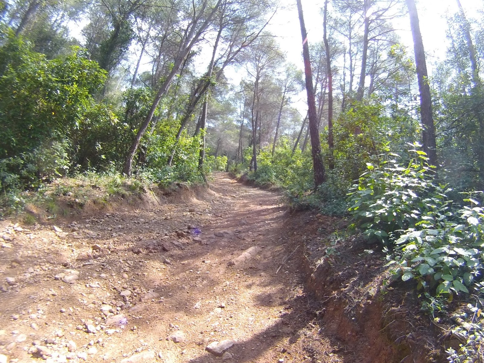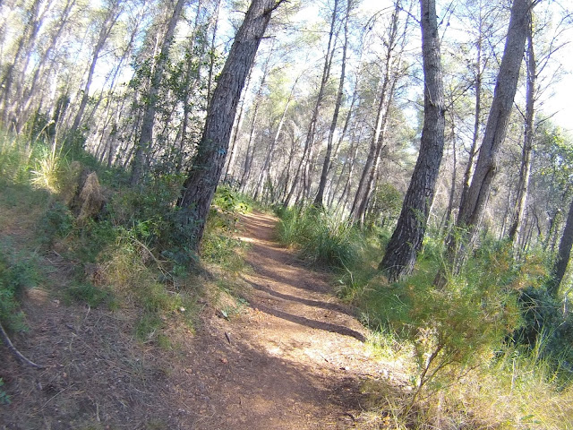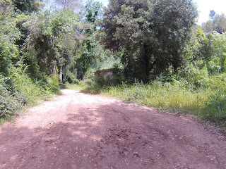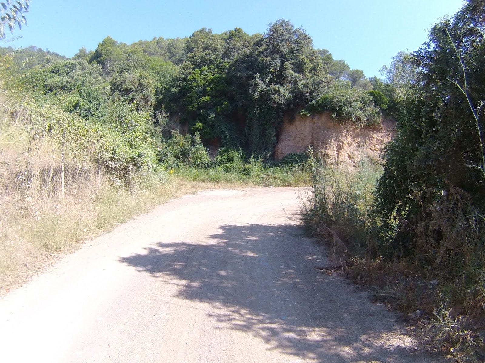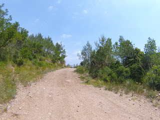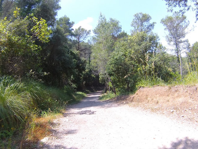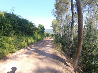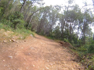 Salida desde el Castillo de Castelldefels (dónde hay un parking gratuito, en el que es muy fácil aparcar), a los pocos minutos tomamos una serie de senderos boscosos y enlazados entre si, que bordean la carretera de la Sentiu, atravesamos el barrio de Vistalegre para buscar las pinedas que bordean la riera dels Canyars lo antes posible, desde allí hasta el parque de Bomberos de Gavá, luego una divertida trialera y atravesamos la carretera que nos lleva a Begas hasta llegar a la rotonda para desviarnos hacia Gavá, acedemos por el camino a Can Bori, por el barrio de la Riera Sant Llorenç, una vez en los cuatro caminos, tomamos el camino agrario de Sant Climent, a través de los cerezos y cultivos, rodeados y protegidos por árboles centenarios de gran altura, en la carretera de Sant Boi, giramos hacia Sant Climent y en la plaza tomamos una estrecha carretera ascendente a la izquierda, que nos lleva a la creu de Querol en plena ruta del Sol Blau, no hay que cebarse pues la parte final es un poco dura, tomamos la pista de Torrellas, que pasa por el museo 'Catalunya en Miniatura'. Una vez en Torrellas se toma la carretera que une Torrellas a Torrelletas (Pista de Begas) y tomamos un pequeño desvío a la derecha, dónde se inicia una ascensión con alguuna rampa que otra, pasaremos cerca de la Penya del Moro a 200 mts. (la parte mas alta) con vistas espectaculares. Seguimos la pista hasta llegar al Puig de Vicenç, en dirección al 'Mas de las Fonts' la carretera está abierta a la derecha a unas vistas panorámicas espectaculares, de todo el valle con las poblaciones de Vallirana al fondo, hasta que nos deja en la misma fuente, el agua fresca y potable, seguimos hasta el depósito de agua y allí por detrás a la derecha seguimos la ruta de las fuentes, veremos una cabaña de piedra a la derecha y al final de una pista en la última bifurcación hay que girar a la derecha, hasta subir a las antenas, una carretera asfaltada pero sin tráfico (los coches tienen el acceso prohibido) Siguiendo abajo en dirección a Can Sadurní, atravesamos Begas y seguimos la carretera de Gavá, a la altura de Can Espinós nos desviamos a la derecha y tomamos el sendero que nos deja en el Invernadero, luego entramos en Castelldefels por 'Els Canyars' y callejeamos en busca del castillo y ya volvemos a ser el punto de partida.