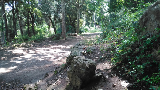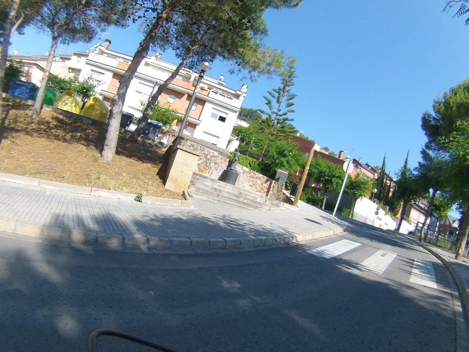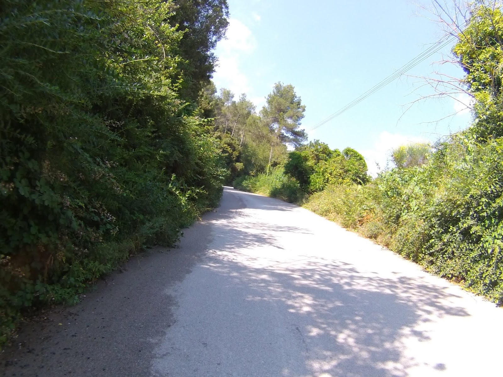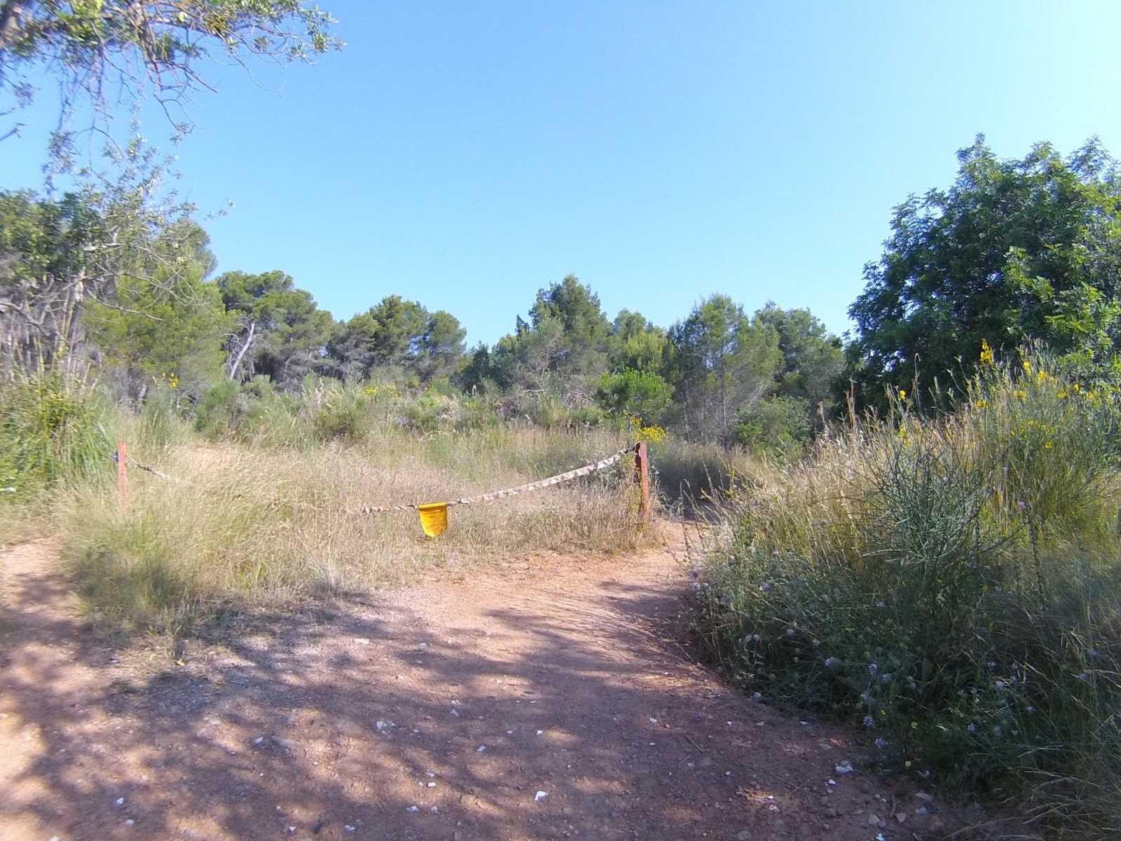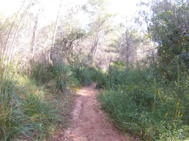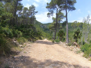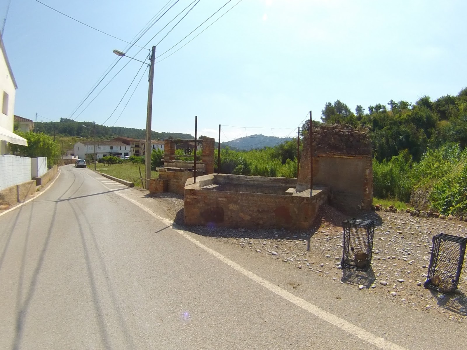 Salida desde el Castillo de Castelldefels (dónde hay un parking gratuito, en el que es muy fácil aparcar), a los pocos minutos tomamos una serie de senderos boscosos y enlazados entre si, que bordean la carretera de la Sentiu, atravesamos el barrio de Vistalegre para buscar las pinedas que bordean la riera dels Canyars lo antes posible, desde allí hasta el parque de Bomberos de Gavá, luego una divertida trialera y atravesamos la carretera que nos lleva a Begas hasta llegar a la rotonda para desviarnos hacia Gavá, acedemos por el camino a Can Bori, por el barrio de la Riera Sant Llorenç, una vez en los cuatro caminos, tomamos el camino agrario de Sant Climent, a través de los cerezos y cultivos, rodeados y protegidos por árboles centenarios de gran altura, en la carretera de Sant Boi, giramos hacia Sant Climent y en la plaza tomamos una estrecha carretera ascendente a la izquierda, que nos lleva a la creu de Querol en plena ruta del Sol Blau, no hay que cebarse pues la parte final es un poco dura, tomamos la pista de Torrellas, que pasa por el museo 'Catalunya en Miniatura'. Una vez en Torrellas se toma la carretera que une Torrellas a Torrelletas (Pista de Begas) y tomamos un pequeño desvío a la derecha, dónde se inicia una ascensión con alguuna rampa que otra, pasaremos cerca de la Penya del Moro a 200 mts. (la parte mas alta) con vistas espectaculares. Seguimos la pista hasta llegar al Puig de Vicenç, en dirección al 'Mas de las Fonts' la carretera está abierta a la derecha a unas vistas panorámicas espectaculares, de todo el valle con las poblaciones de Vallirana al fondo, hasta que nos deja en la misma fuente, el agua fresca y potable, seguimos hasta el depósito de agua y allí por detrás a la derecha seguimos la ruta de las fuentes, veremos una cabaña de piedra a la derecha y al final de una pista en la última bifurcación hay que girar a la derecha, hasta subir a las antenas, una carretera asfaltada pero sin tráfico (los coches tienen el acceso prohibido) Siguiendo abajo en dirección a Can Sadurní, atravesamos Begas y seguimos la carretera de Gavá, a la altura de Can Espinós nos desviamos a la derecha y tomamos el sendero que nos deja en el Invernadero, luego entramos en Castelldefels por 'Els Canyars' y callejeamos en busca del castillo y ya volvemos a ser el punto de partida.
