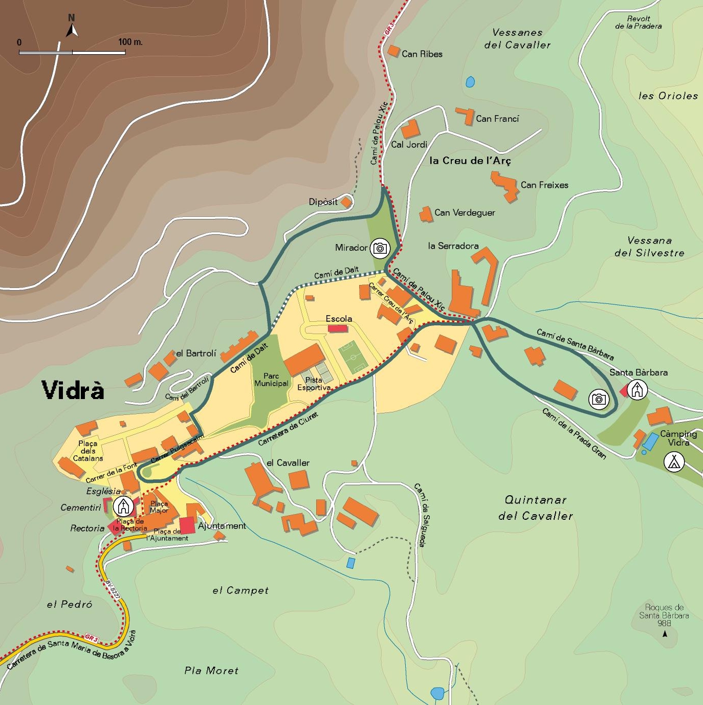 Dispone de el Arborètum en la parte más nueva de Vidrà dirección a la Cruz del Espino, hace muchos años se fueron plantando árboles de diferentes especies que han arraigado gracias a la meteorología y la pureza del ambiente y baja contaminación, motivos que han hecho que muchos de estos árboles hayan crecido majestuosos y sanos, un Itinerario circular, que une los dos núcleos de Vidrà, en el que nos encontramos unos 20 árboles autóctonos, diferentes entre si, señalizados con una placa con su explicación correspondiente, en un recorrido de 1500 mts, una propuesta atractiva y sugerente.
