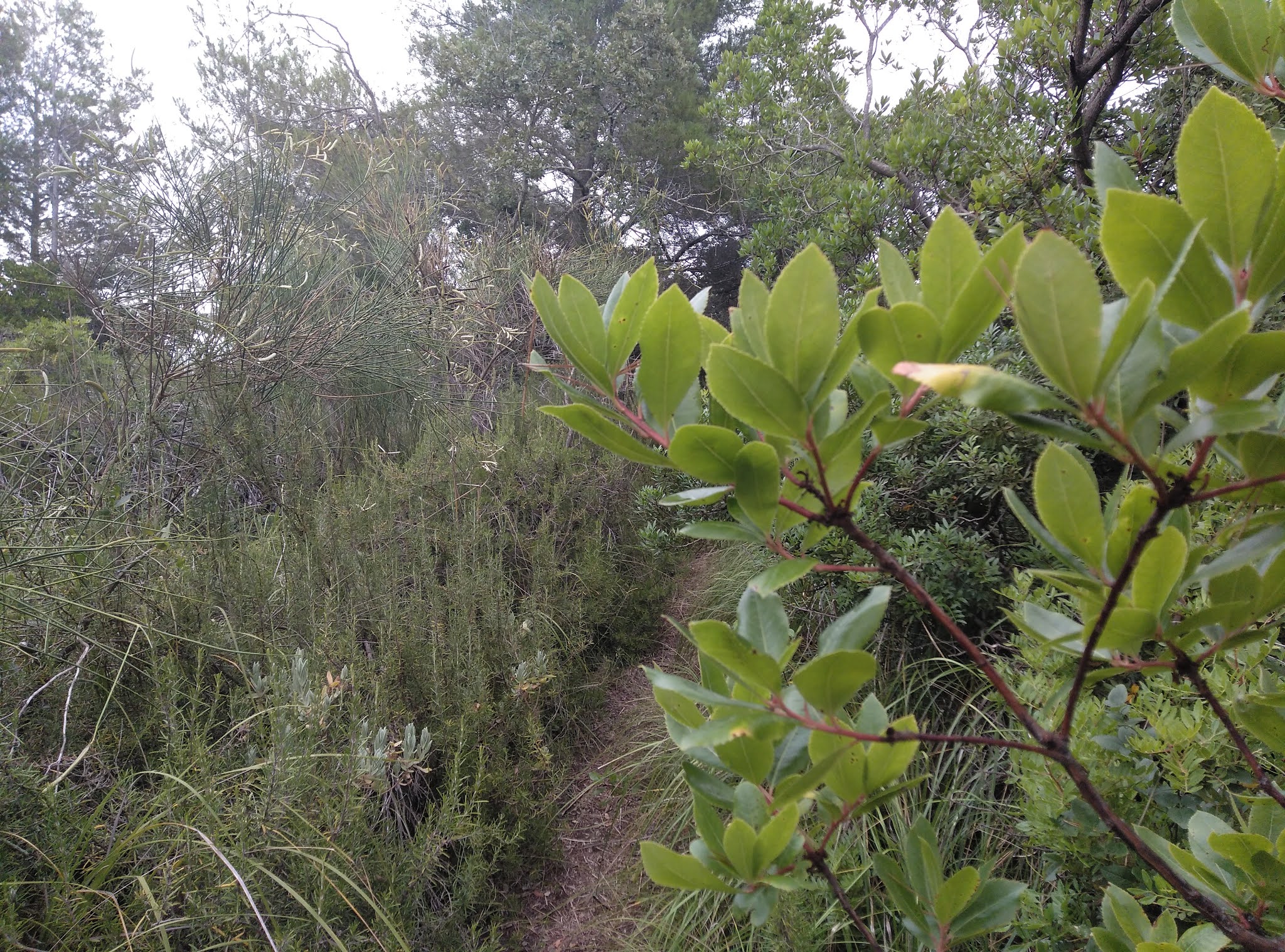 Se pueden ver arbustos como el lentisco (Pistacia lentiscu), la coscoja (Quercus coccifera), el palmito o margalló (Chamaerops humilis), la ginesta o retama (Spartium junceum), el espino prieto (Rhamnus lycioides), el acebuche (Olea europaea var. sylvestris) el enebro (Juniperus oxycedrus), o el brezo (Erica multiflora).