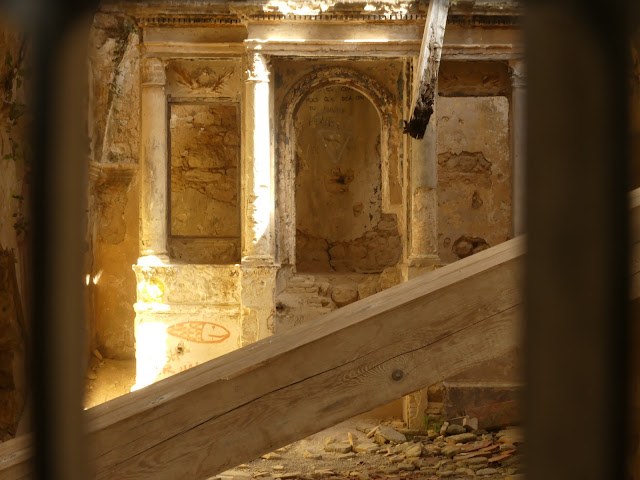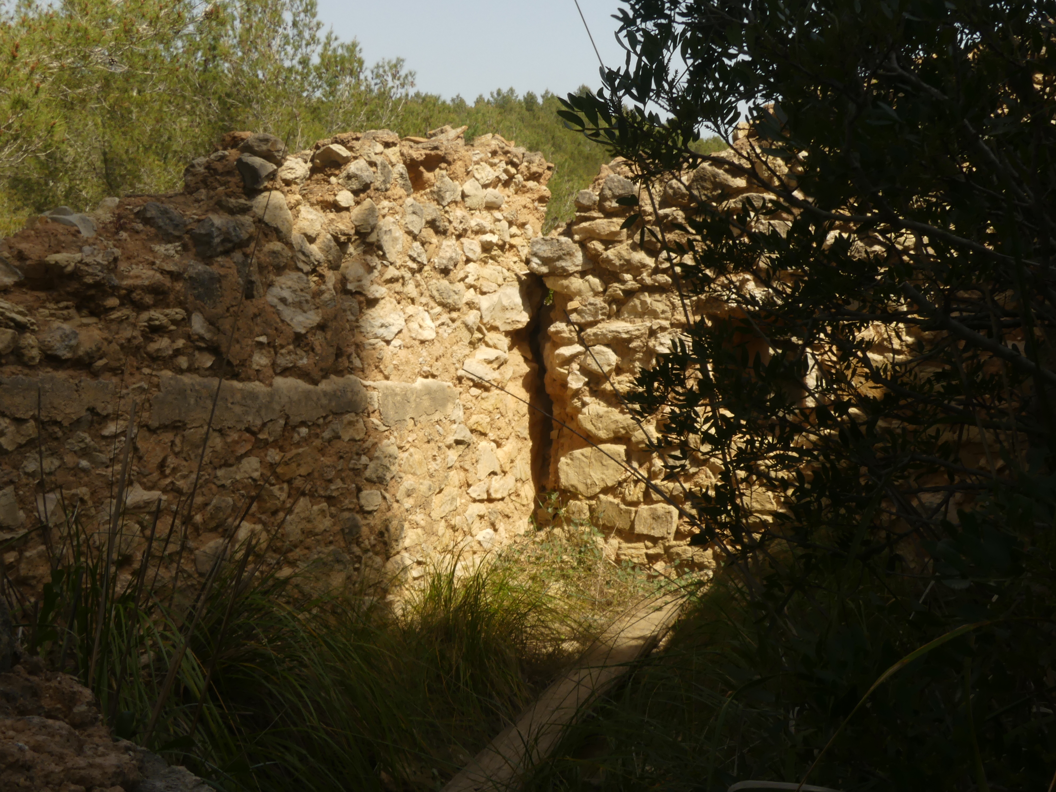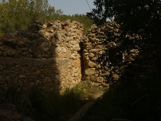 Recorrido Se llega en coche hasta la calle que da a Palau Novella, pues aunque el mismo Parking está repleto, se puede aparcar bastante bien por los alrededores, tomamos la pista de Sitges, perfectamente indicada, una visita completa al pueblo abandonado de Jafra, en el que se pueden ver hasta sus calles, comidas por la maleza y algún árbol, se puede entrar aprovechando algún resquicio en el vallado, sobre todo hay que tener cuidado pues algunas zonas están muy deterioradas, la Iglesia está cerrada, pero se puede ver su interior desde fuera. Una vez visitado Jafra, se sigue la pista anterior, hasta encontrarnos con un cruce, hay que seguir el de la derecha en dirección a 'La Fassina' perfectamente indicada, esta antigua masía, antes se dedicaba a la destilería, ahora perfectamente rehabilitada se dedica a tareas de turismo, elaboración de mermeladas, licores y ahí en un chiringuito de madera, bajo un palomar, donde conviven palomas, gansos, patos y las gallinas que se han encargado de poner los huevos para nuestra deliciosa tortilla, seguiremos recto la pista hasta encontrarnos en un múltiple cruce, que nos indica la ruta a seguir, marcada en un poste también en el siguiente cruce, con varias bifurcaciones, hasta descubrir al final de la misma, Cova Negra, pasando por Forats d'en Bori, una vez llegados allí en la bifurcación tomaremos la ruta de Jafra. Para las subida al interior dels forats d'en Bori tienen una cierta dificultad, hay que grimpar un poco, excepto la Cova Negra, pero también si no queremos riesgos se pueden ver desde fuera, el paseo es muy agradable, a la vuelta visitaremos el templo budista.