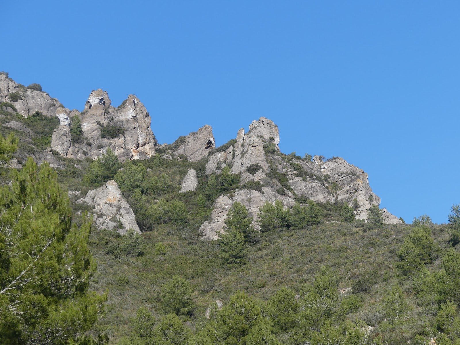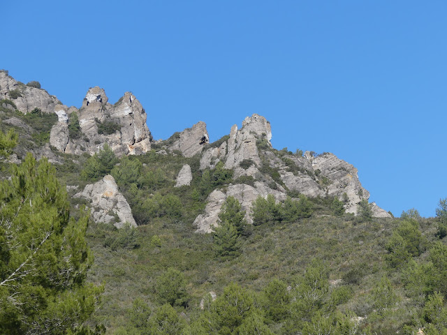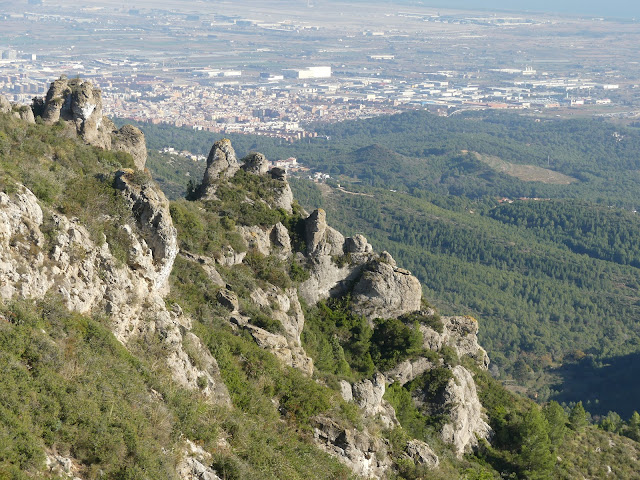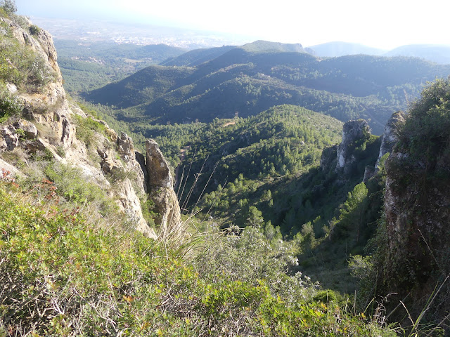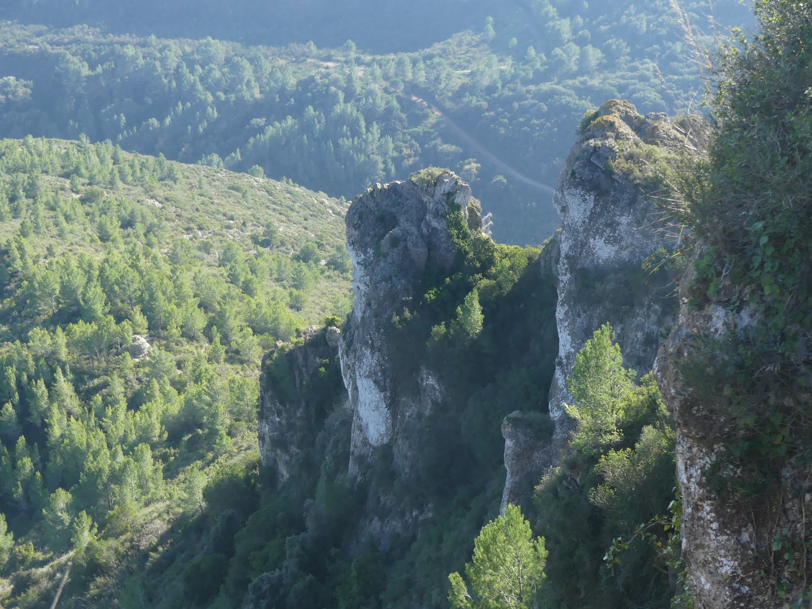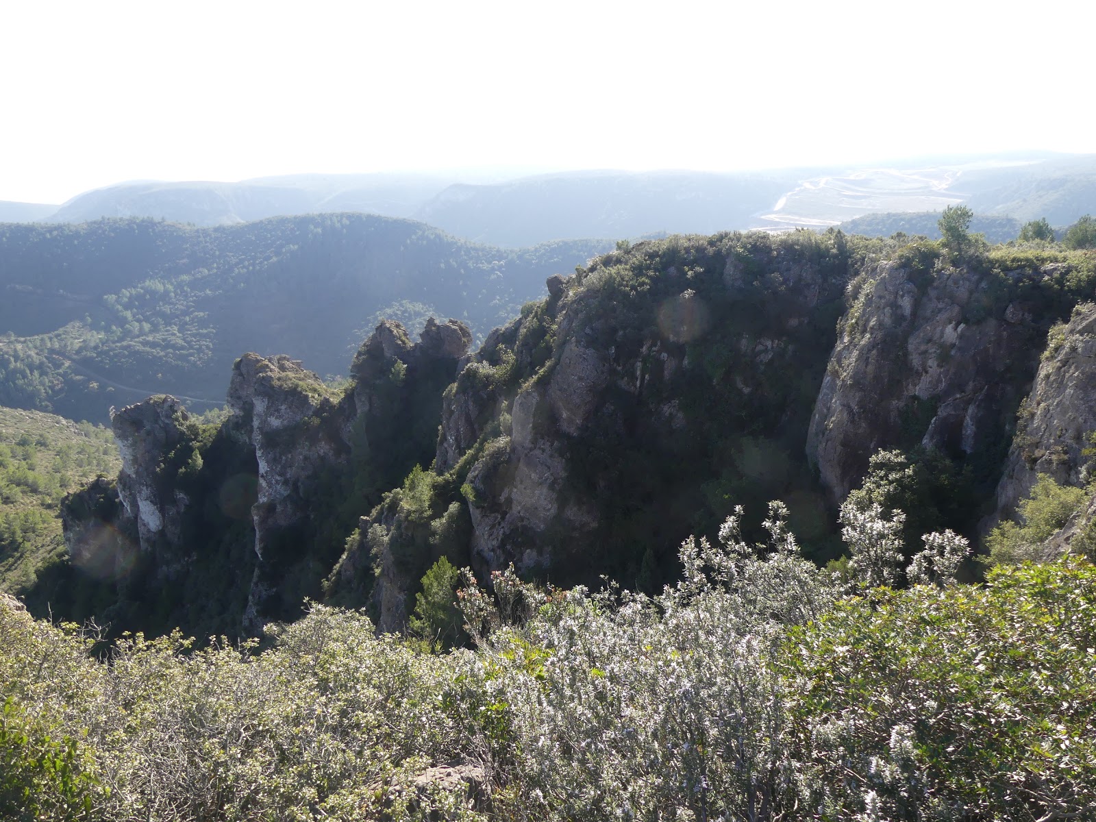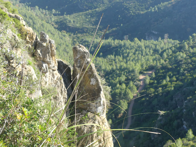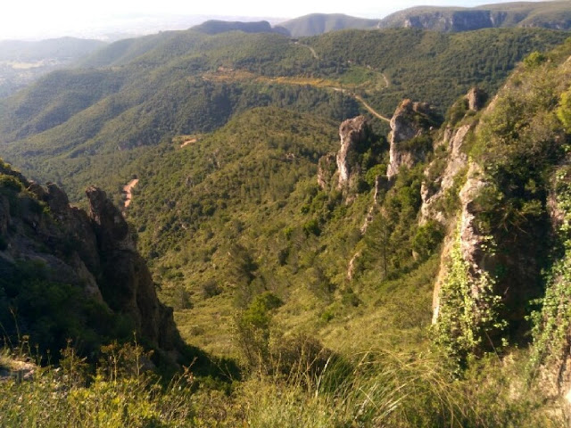 Ruta impresionante a través de las Agulles, primero desde arriba y luego descendiendo por un desfiladero a sus pies, con una visita a la Cova de Casimanya, se transita por unas trialeras muy estrechas a las que apenas llega el sol, por las paredes de roca y por la vegetación a los lados , lo cuál es de agradecer sobretodo cuando el sol aprieta, se van enlazando senderos hasta llegar al Purgatorio a la altura de la balsa para incendios, al lado del antiguo campo de tiro, acabaremos en la pista (antiguo camino medieval para ir a Begas). Aparcamos el coche en la pista del parque Natural de Garraf, hasta alcanzar el cruce de 'La Pleta', cruce de obligado paso que da para GR diferentes, al Oeste dos rutas para ir a 'La Morella', una de ellas para el Puig de les Agulles y la cueva Cassimanya, Norte a Begas y este un sendero para ir al Castell D'Eramprunya, al sur la vuelta a Castelldefels, tomaremos la segunda de la izquierda, una pista de gravilla blanca y GR entrecruzados, que va subiendo lentamente, al final de la cuál nos deja en una explanada en la cima, nos encontraremos prácticamente en Les Agulles, vale la pena asomarse para apreciar las vistas panorámicas y luego tomar un sendero, no marcado que nos llevara a la Cova de Cassimanya, en la cueva cuesta un poco entrar, sobretodo vigilar al andar por lo escarpado y subir a la cueva, con un pequeño grimpado, parece un nido de águila, un trono privilegiado desde donde se puede ver hasta el mar y las vistas de la profundidad del barranco, luego tomamos una serie de senderos que nos volverán a dejar en la Pleta, es muy interesante apreciar la erosión de estas montañas calizas y sus agujas calcáreas. Hay otra alternativa para volver un poco mas corta pero mas metida en la montaña y con menos desnivel: