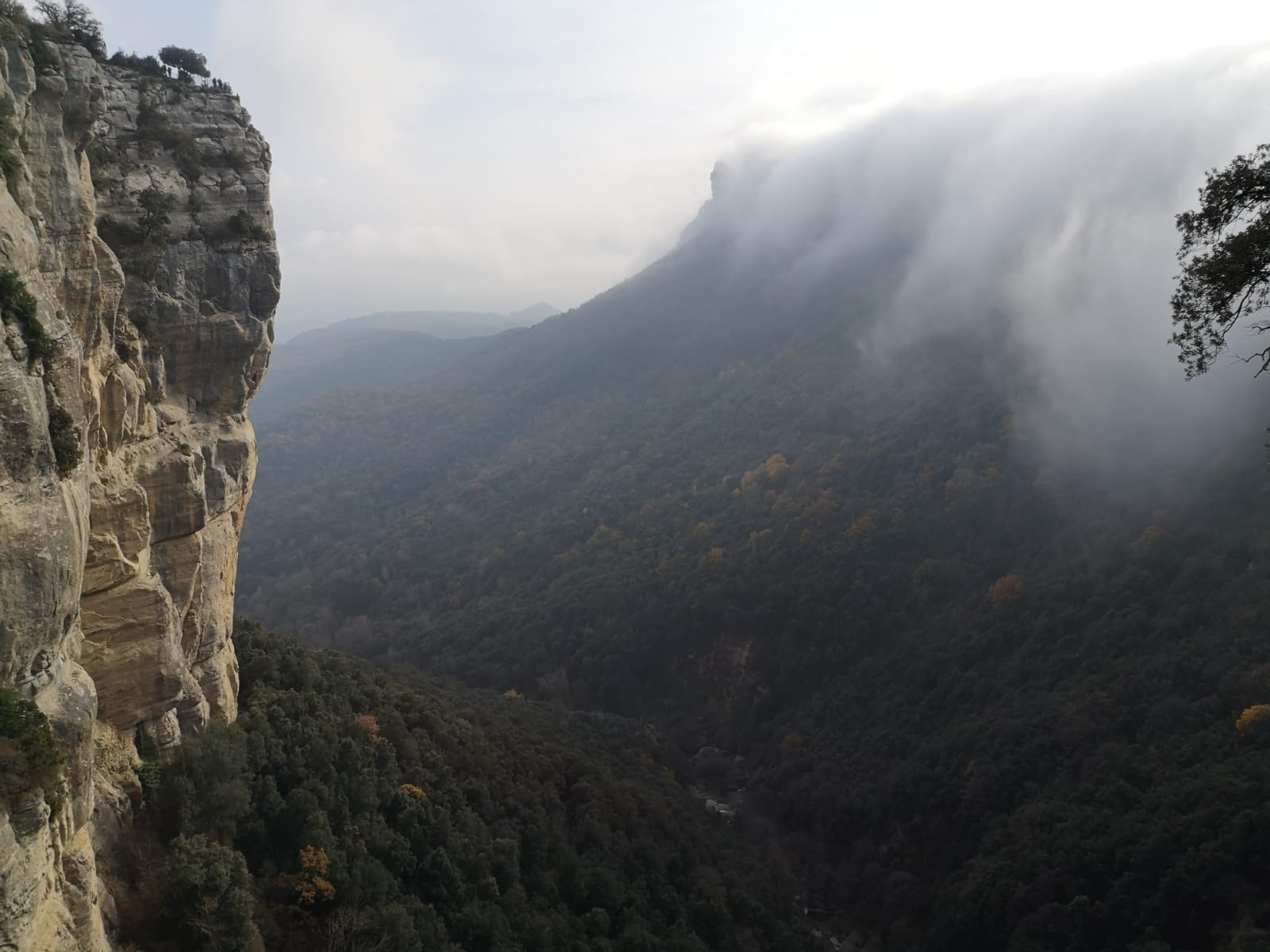 Es bastante habitual encontrarse con niebla, particularmente intensa el día del recorrido, lo cual impedía ver el horizonte pero daba una visión bastante mágica del recorrido sobre todo en las vistas panorámicas.