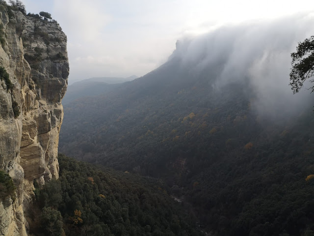 Retrocedemos hasta la parte superior del salto y continuamos por la pista que cruza la riera en dirección al Grau de Sant Joan disfrutando de nuevo de unas maravillosas vistas de la otra parte del acantilado.