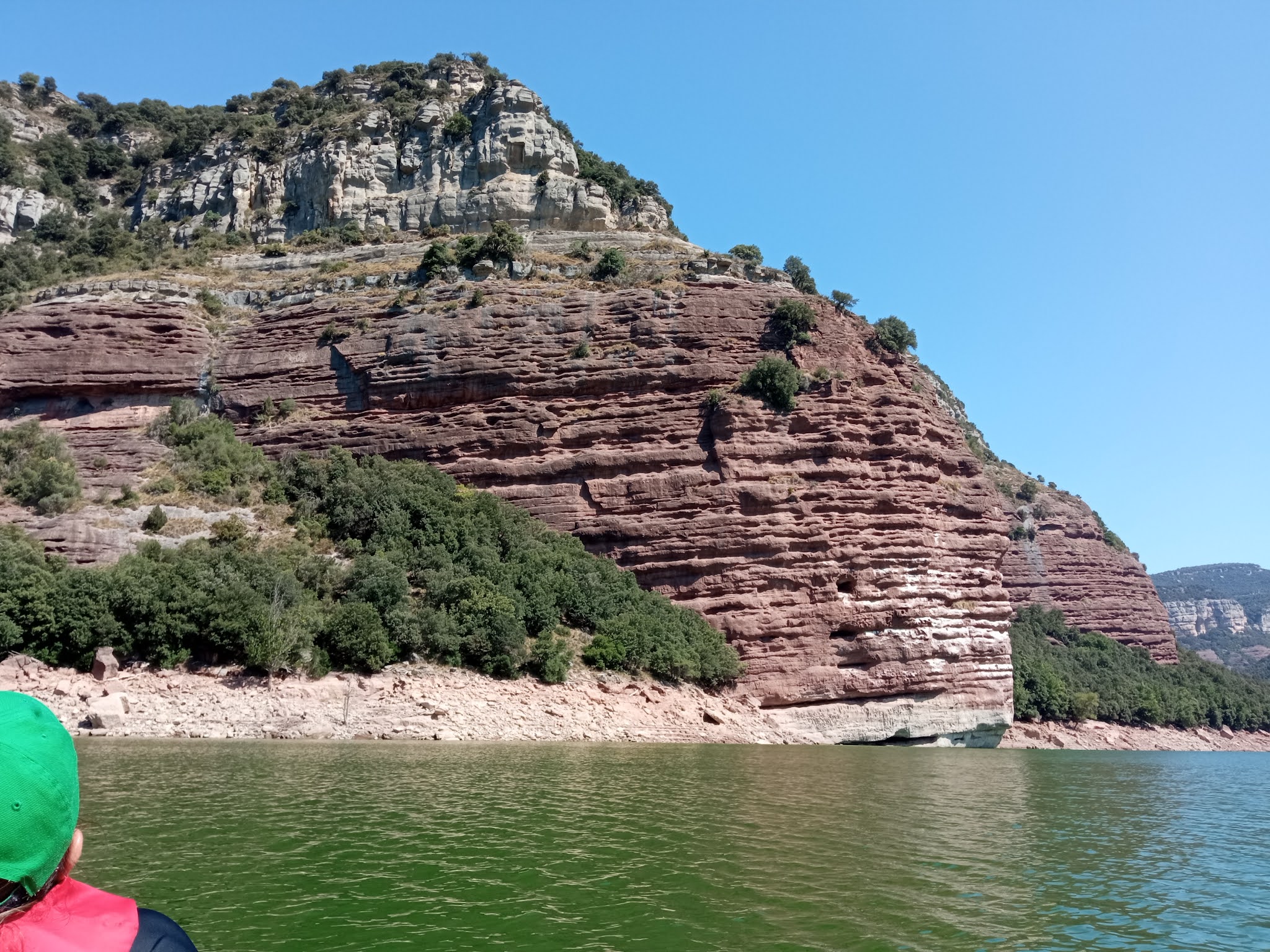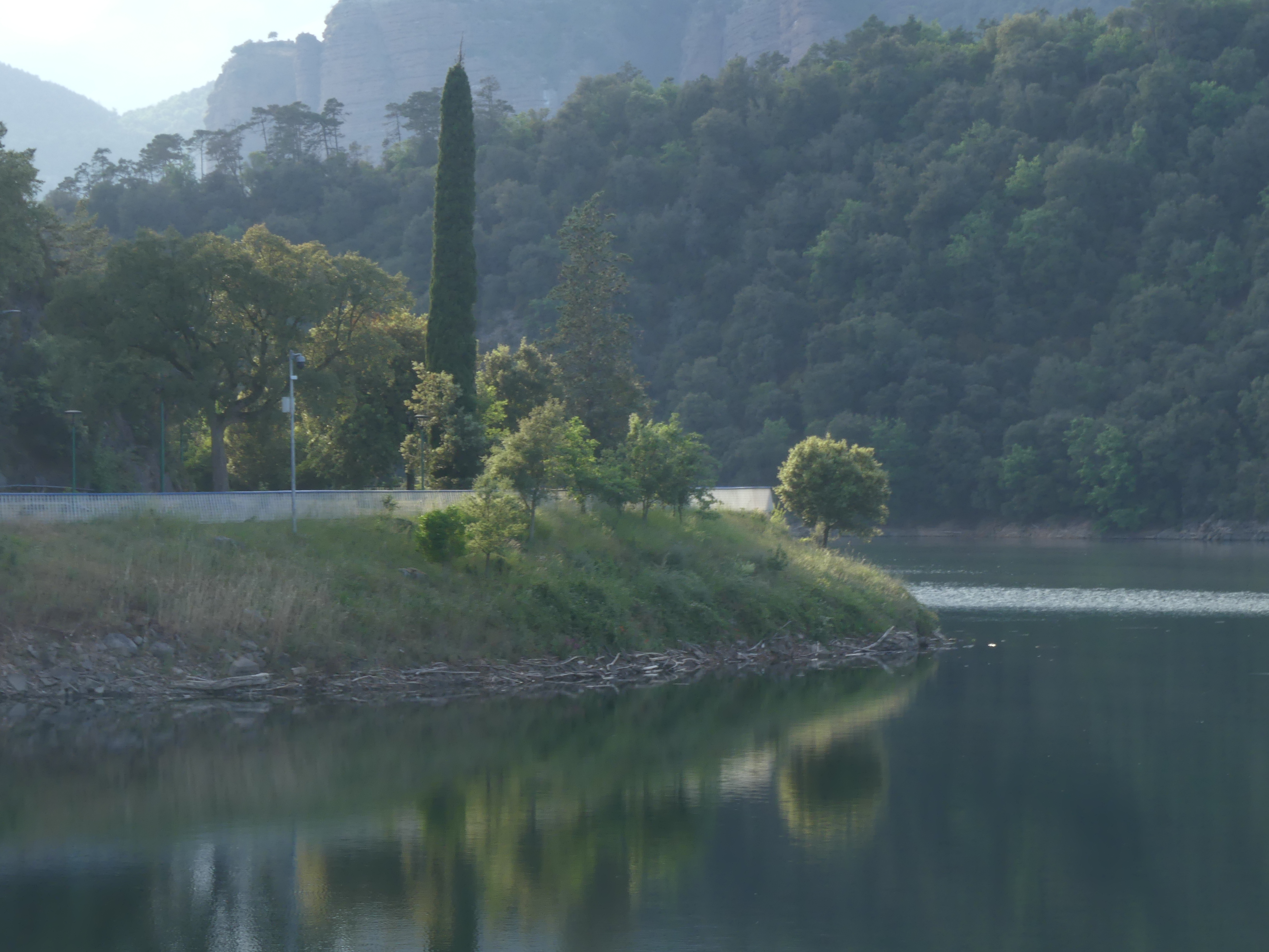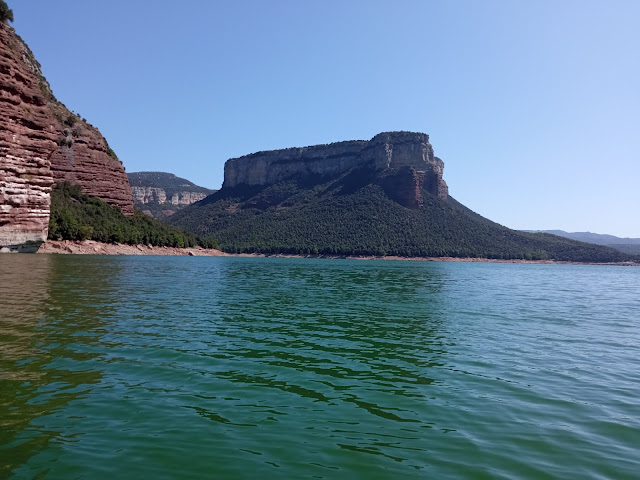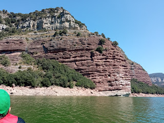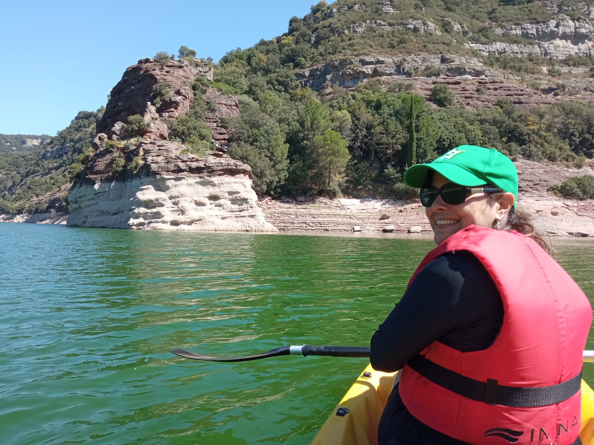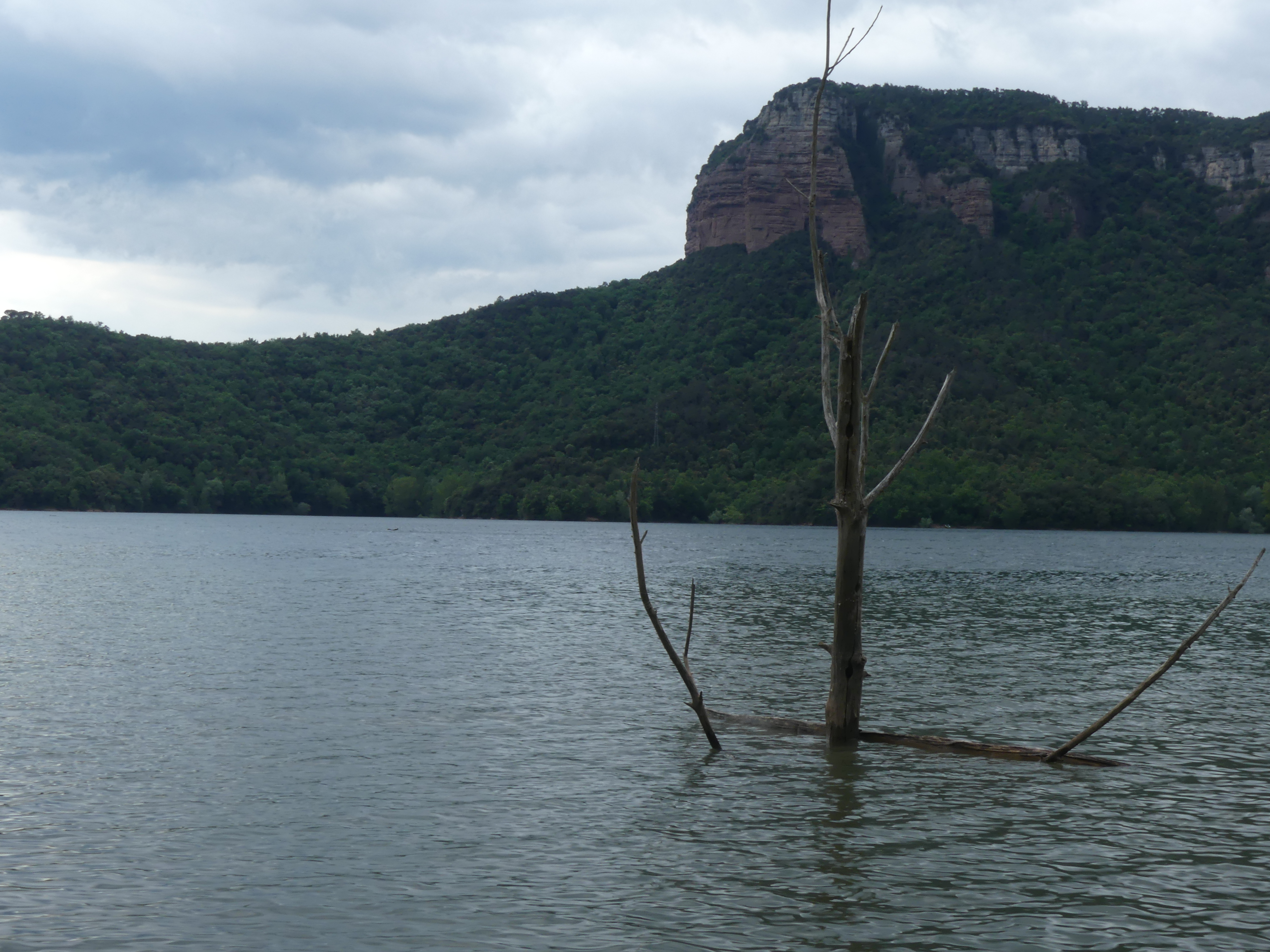 Salida desde el Club Naútico de Vic, primera visita obligada al campanario, pocas veces se puede observar tan fácilmente la cubierta de un campanario románico, después de unos 'incidentes' vuelta a la orilla y recorrido por el medio del pantano hasta el Cingle de la Sarment, vuelta cerca de la orilla para una visión única de los acantilados recorriendo las moles inmensas que se sumergen en las aguas, el brazo Balà, en donde se estrecha el camino y se pone muy vertical, justo debajo del mirador del Morro de l'abella. Un paraje espectacular al pie de los acantilados característicos de Tavertet y 2 horas remando tranquilamente. Es navegable a través de los meandros llegar hasta Roda de Ter (14 km) Hay 3 tipos de kayaks, de una, dos o tres plazas, el de una plaza requiere una cierta experiencia pues es algo mas inestable, el de tres plazas está pensado para 2 adultos y un niño, en ningún caso 3 adultos, no está permitido acercarse a la presa.