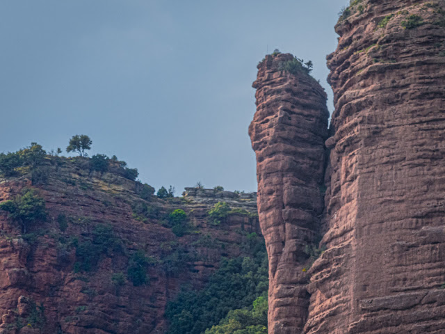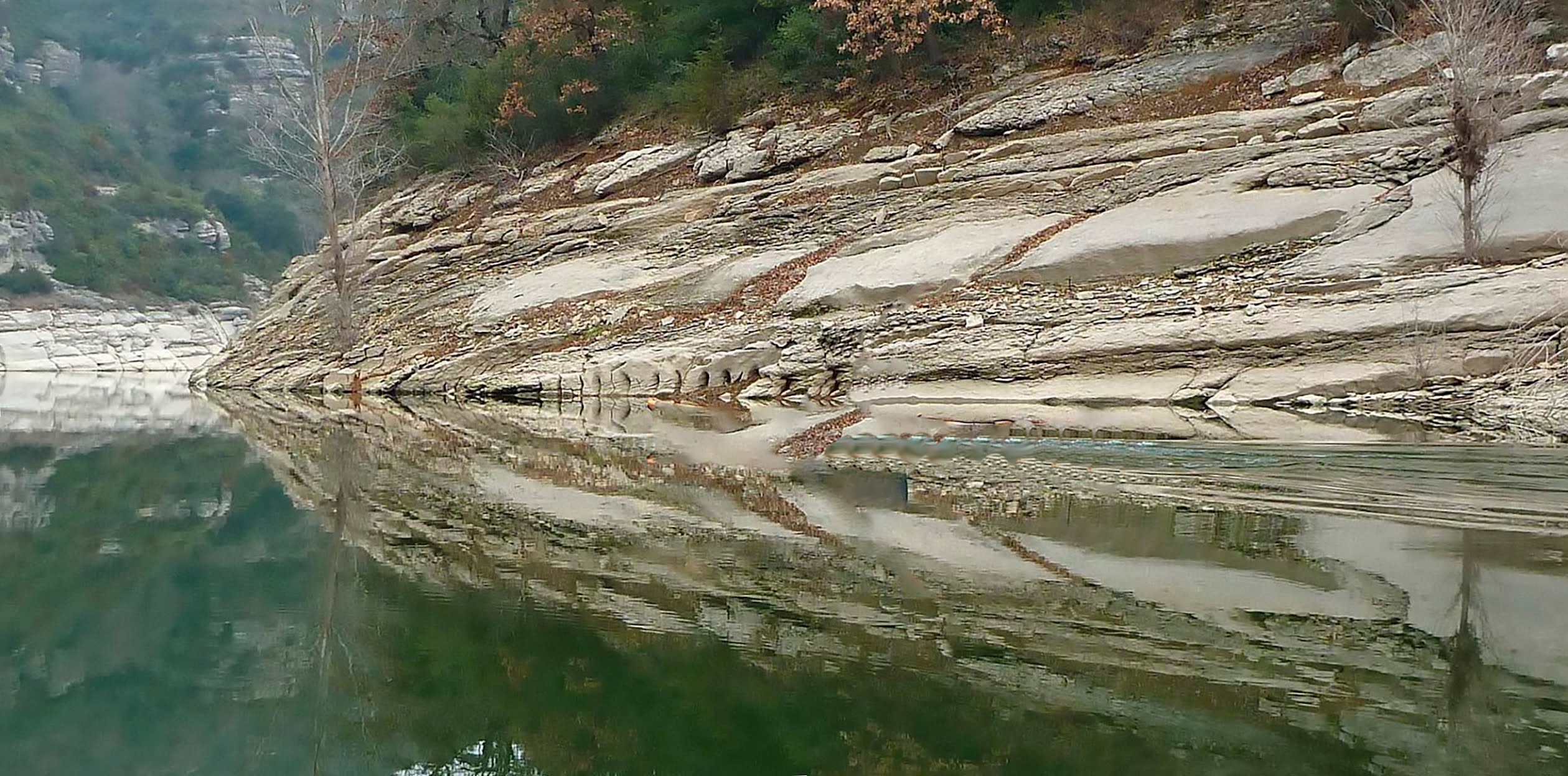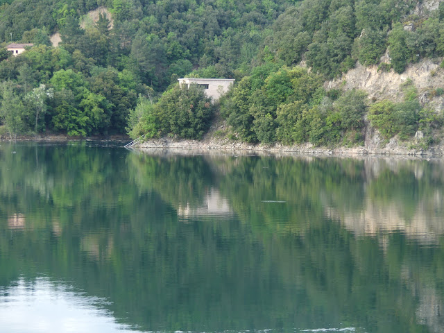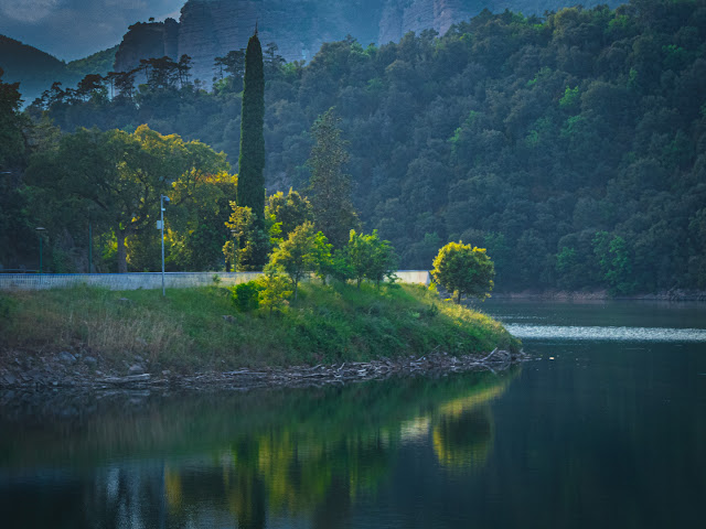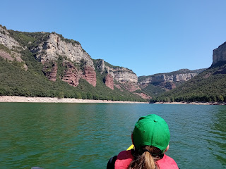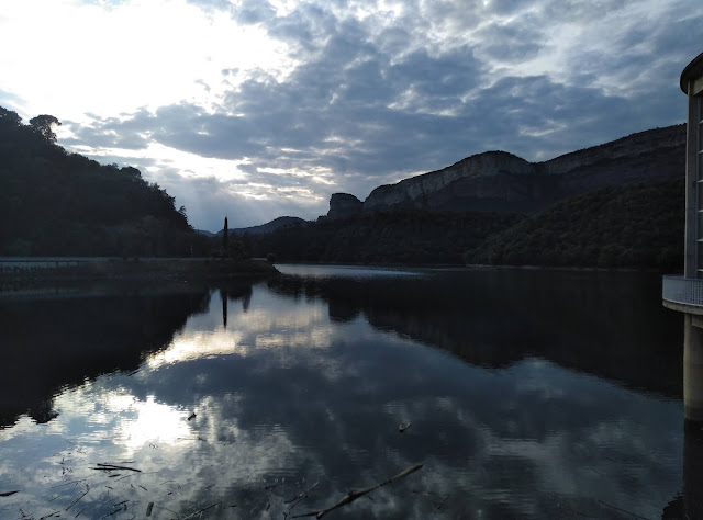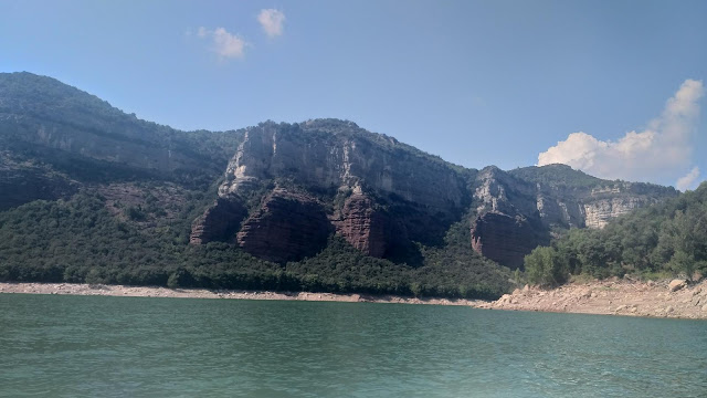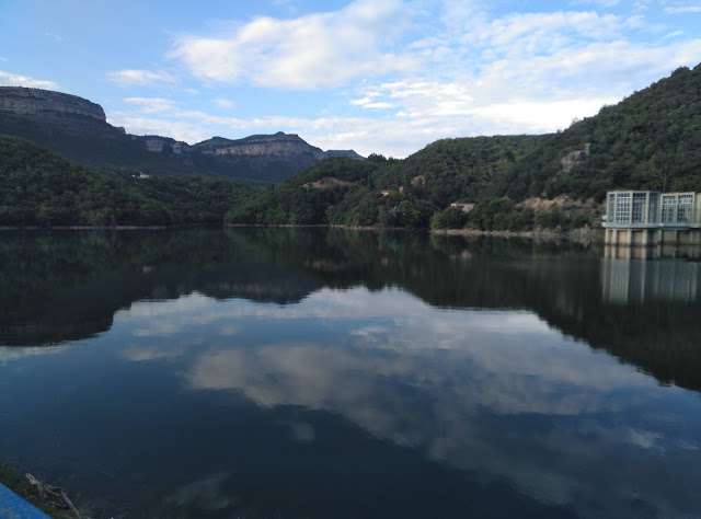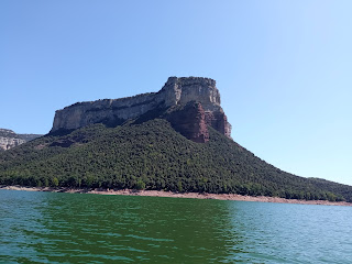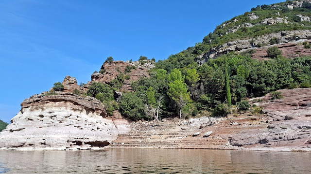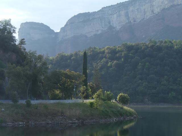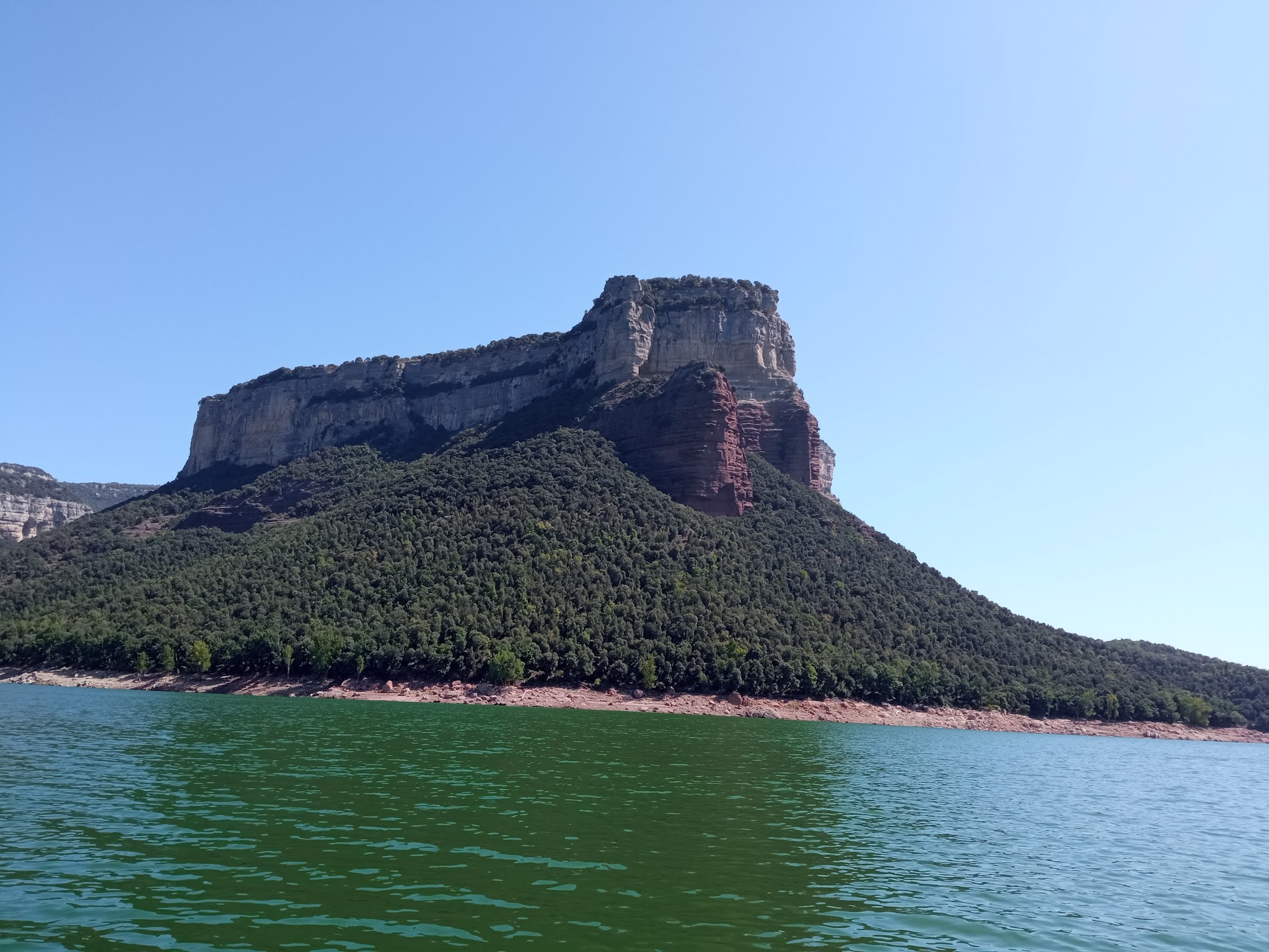 Salida desde el Club Naútico de Vic, primera visita obligada al campanario, pocas veces se puede observar tan fácilmente la cubierta de un campanario románico, después de unos 'incidentes' vuelta a la orilla y recorrido por el medio del pantano hasta el Cingle de la Sarment, vuelta cerca de la orilla para una visión única de los acantilados recorriendo las moles inmensas que se sumergen en las aguas, el brazo Balà, en donde se estrecha el camino y se pone muy vertical, justo debajo del mirador del Morro de l'abella. Un paraje espectacular al pie de los acantilados característicos de Tavertet y 2 horas remando tranquilamente. Es navegable a través de los meandros llegar hasta Roda de Ter (14 km) Hay 3 tipos de kayaks, de una, dos o tres plazas, el de una plaza requiere una cierta experiencia pues es algo mas inestable, el de tres plazas está pensado para 2 adultos y un niño, en ningún caso 3 adultos, no está permitido acercarse a la presa.