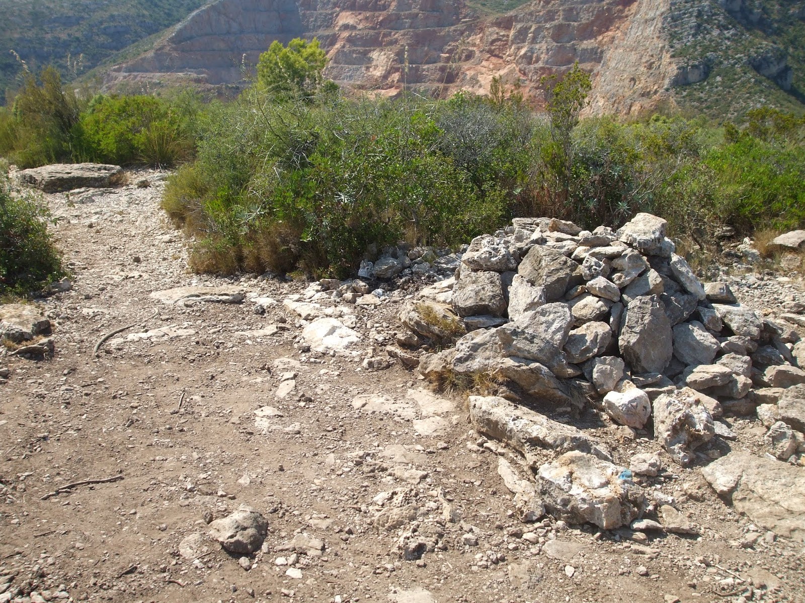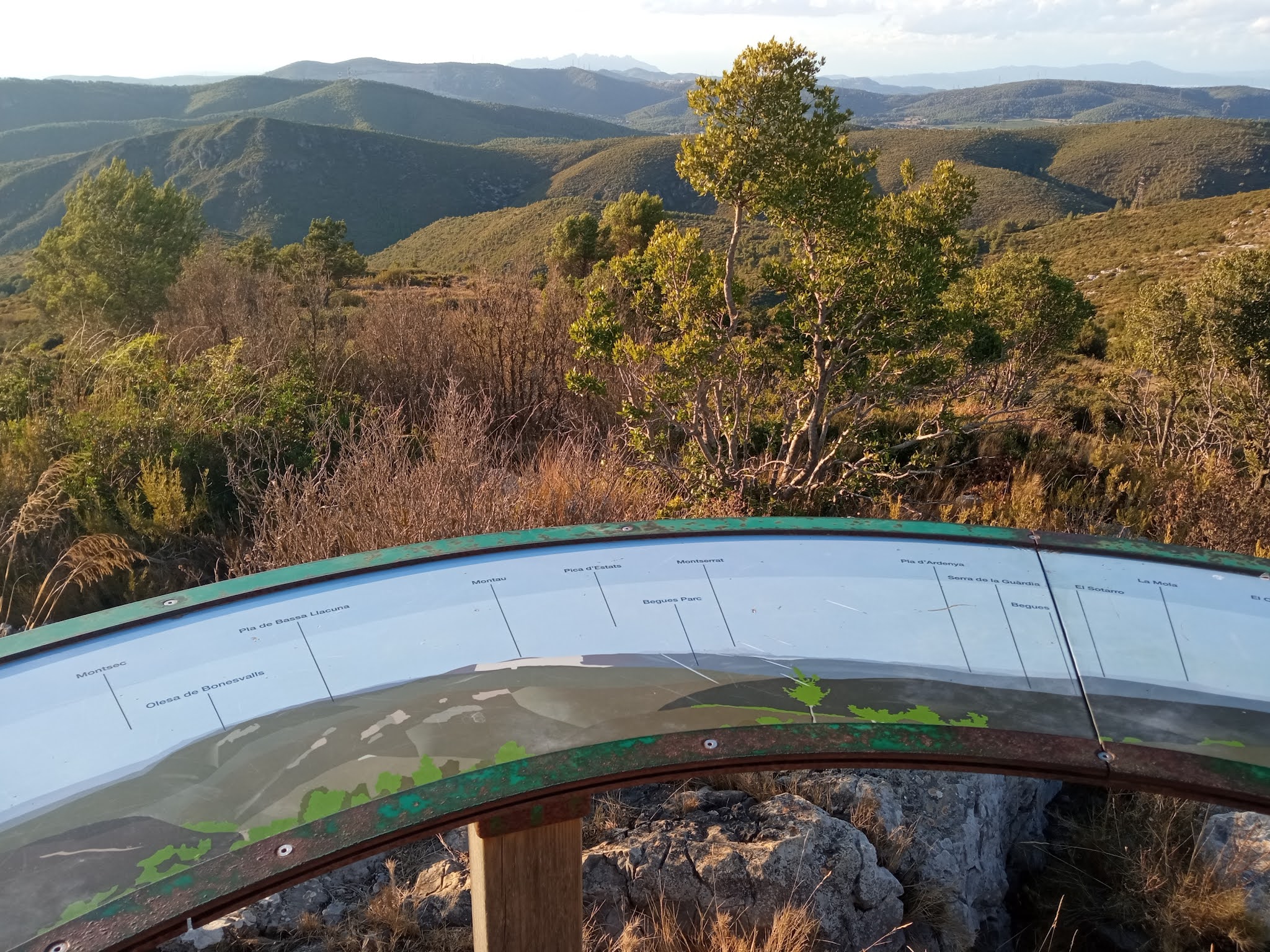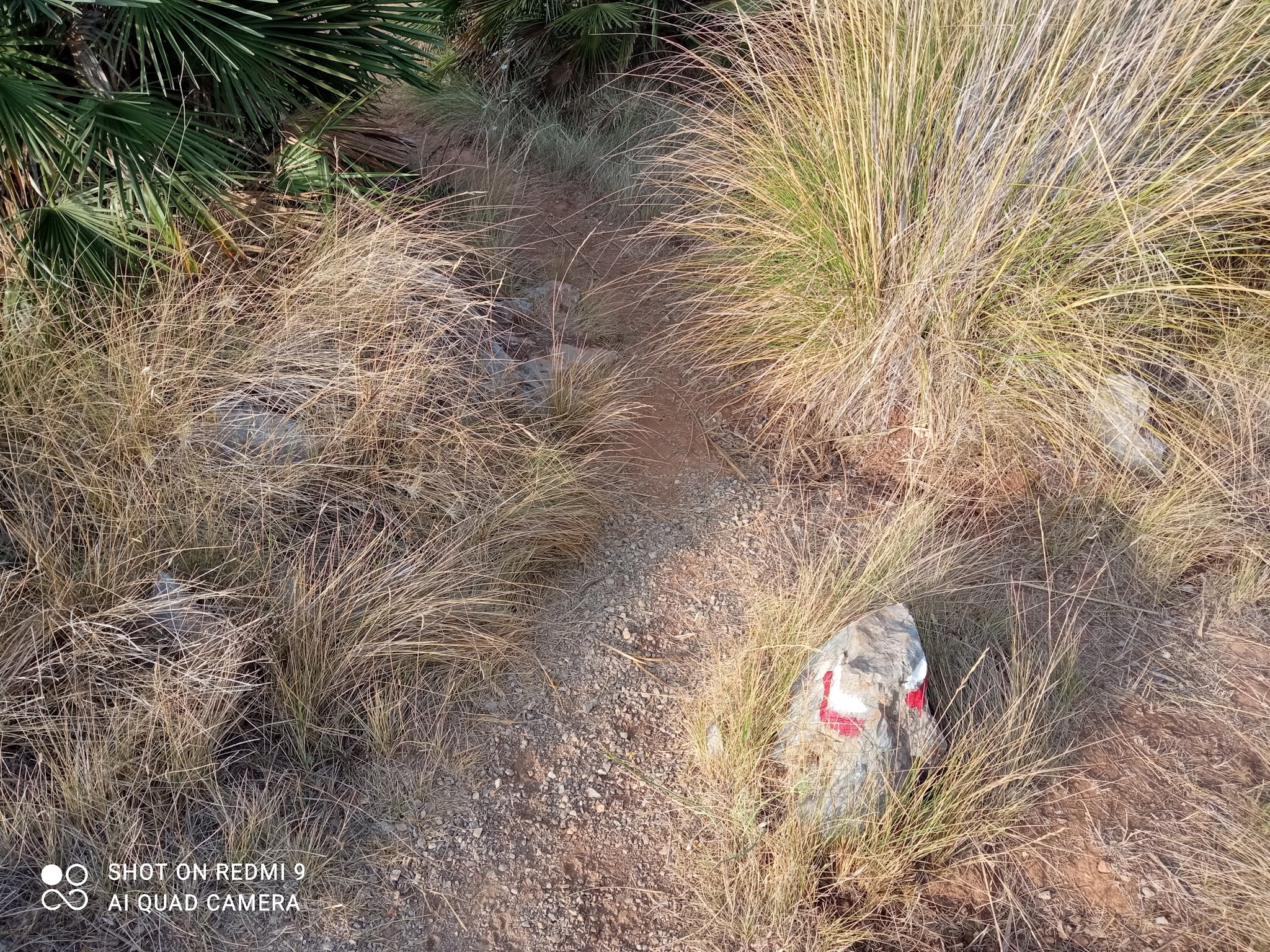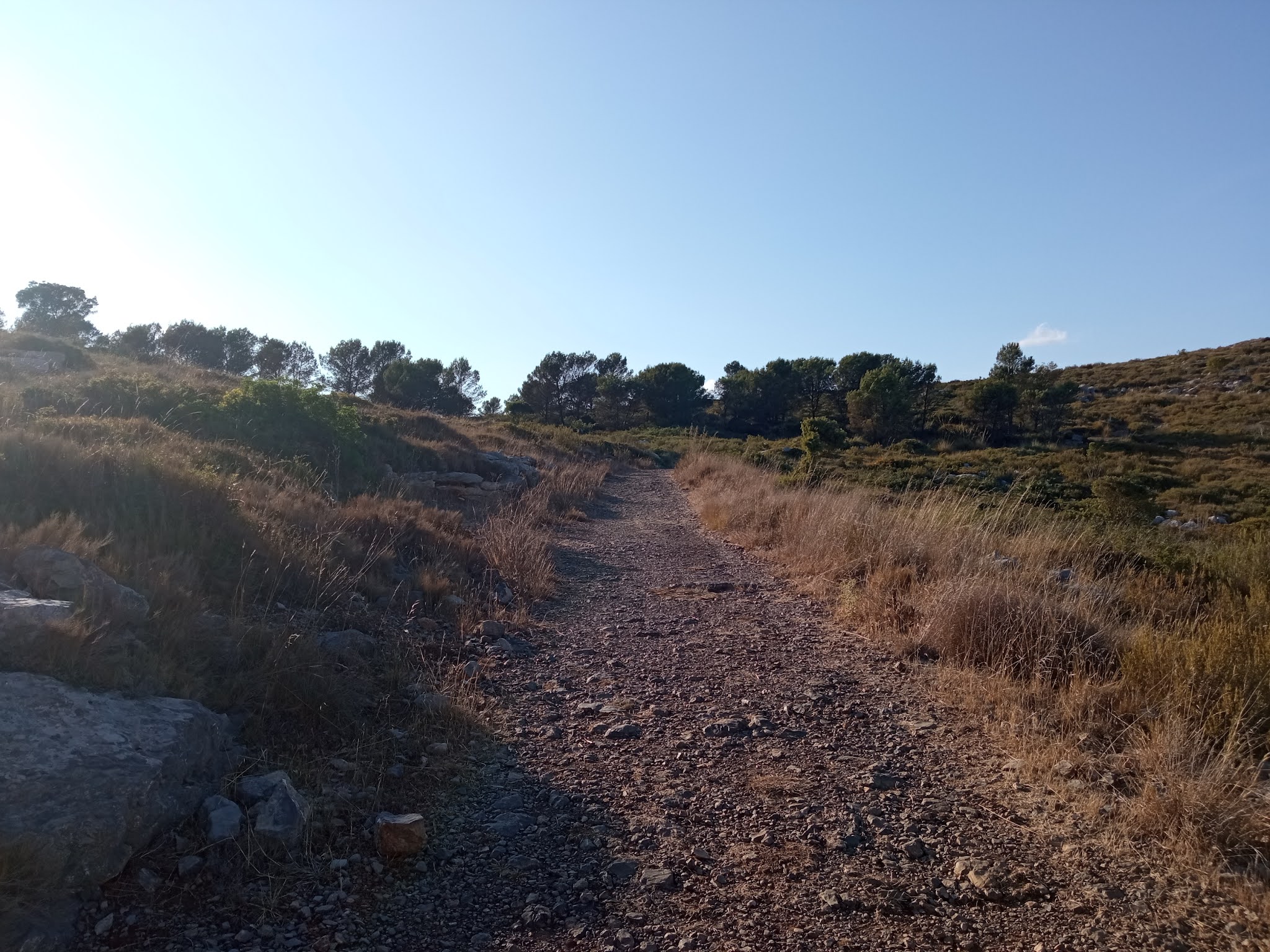 En total, desde el Castillo a La Morella hay unos 7 Km en fuerte subida en un camino pedregoso. Desde este punto iniciaremos la vuelta, deshaciendo el camino hasta llegar al cruce antes citado, donde veremos el camino que nos devuelve a Cal Ganxo.