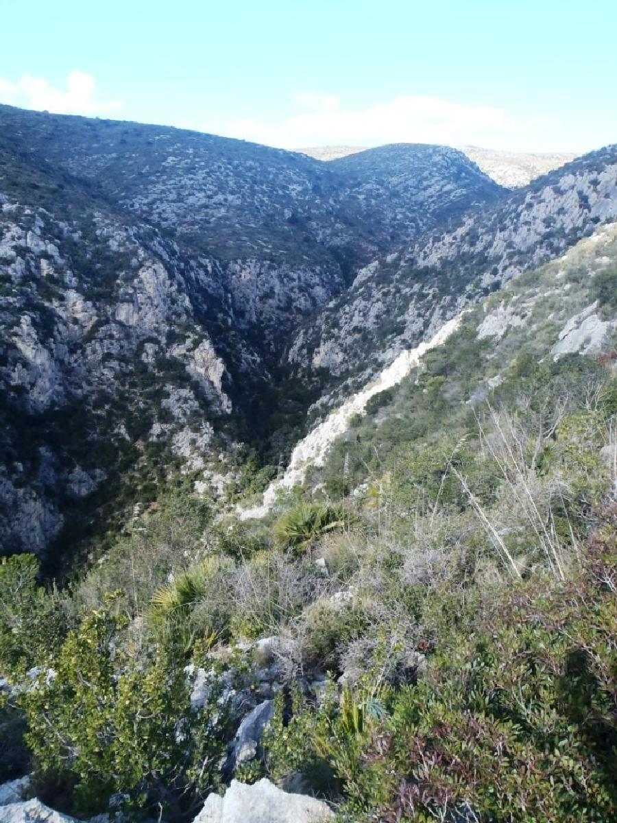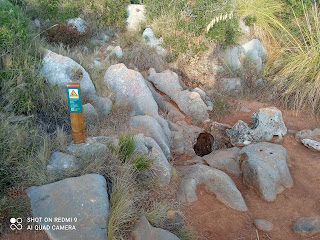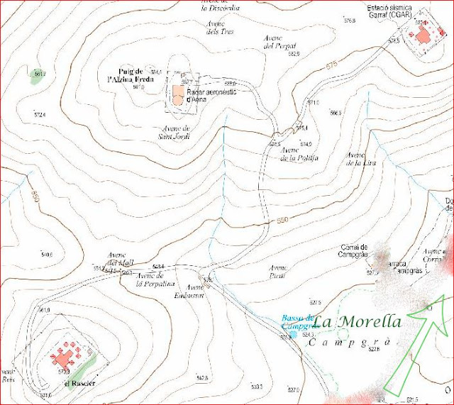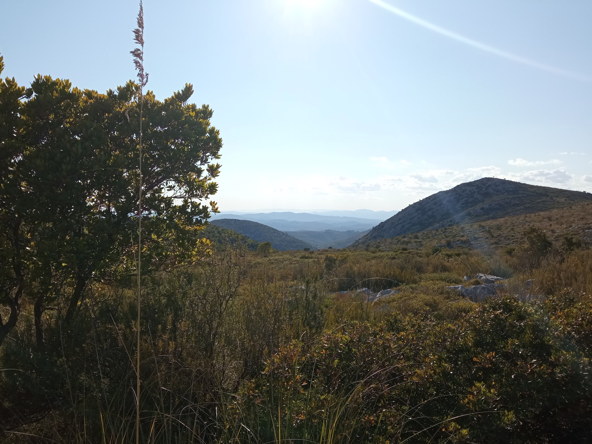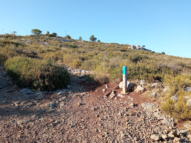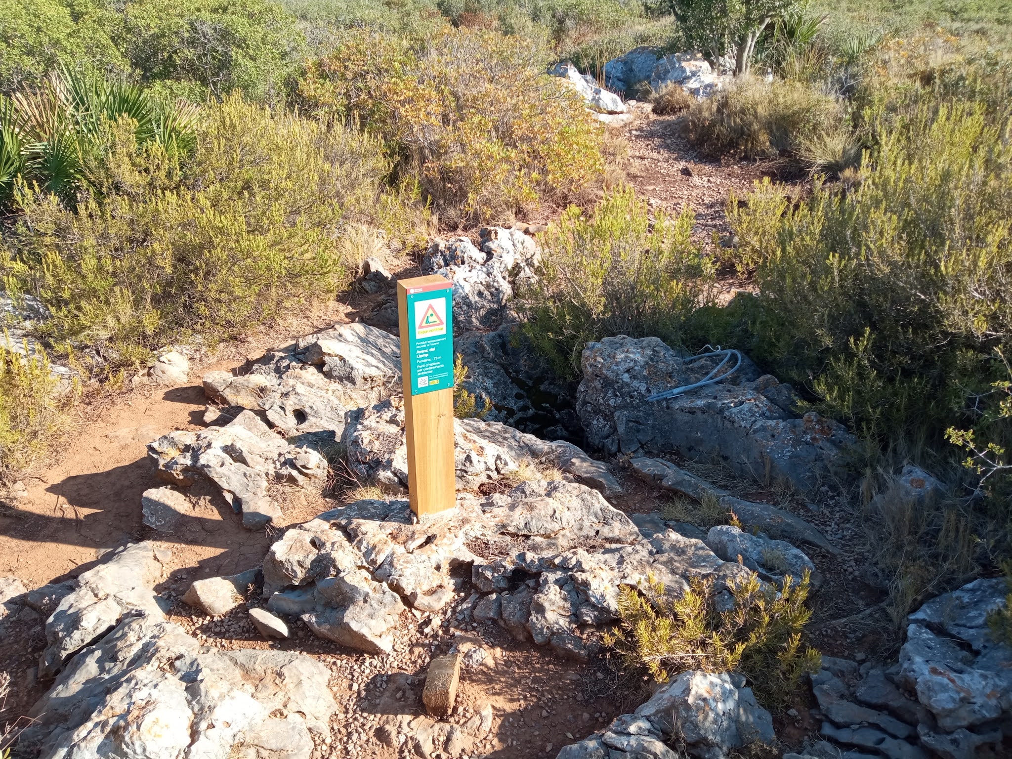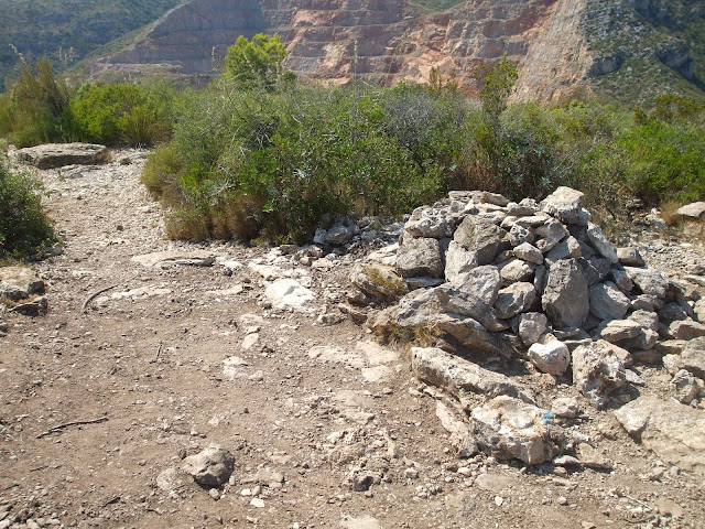 En total, desde el Castillo a La Morella hay unos 7 Km en fuerte subida en un camino pedregoso. Desde este punto iniciaremos la vuelta, deshaciendo el camino hasta llegar al cruce antes citado, donde veremos el camino que nos devuelve a Cal Ganxo.