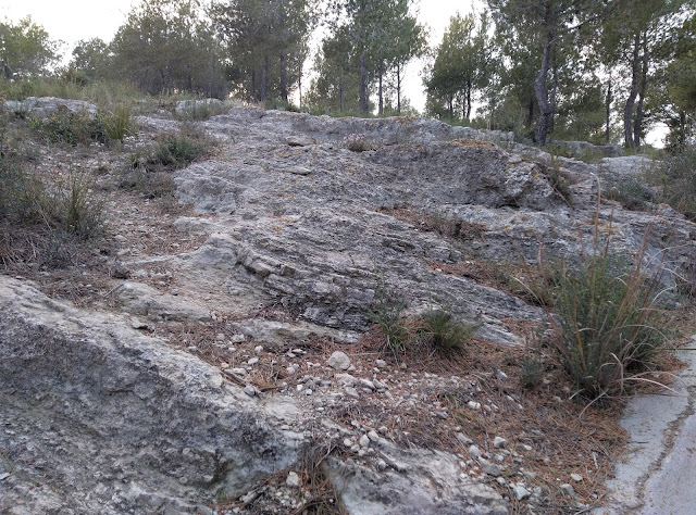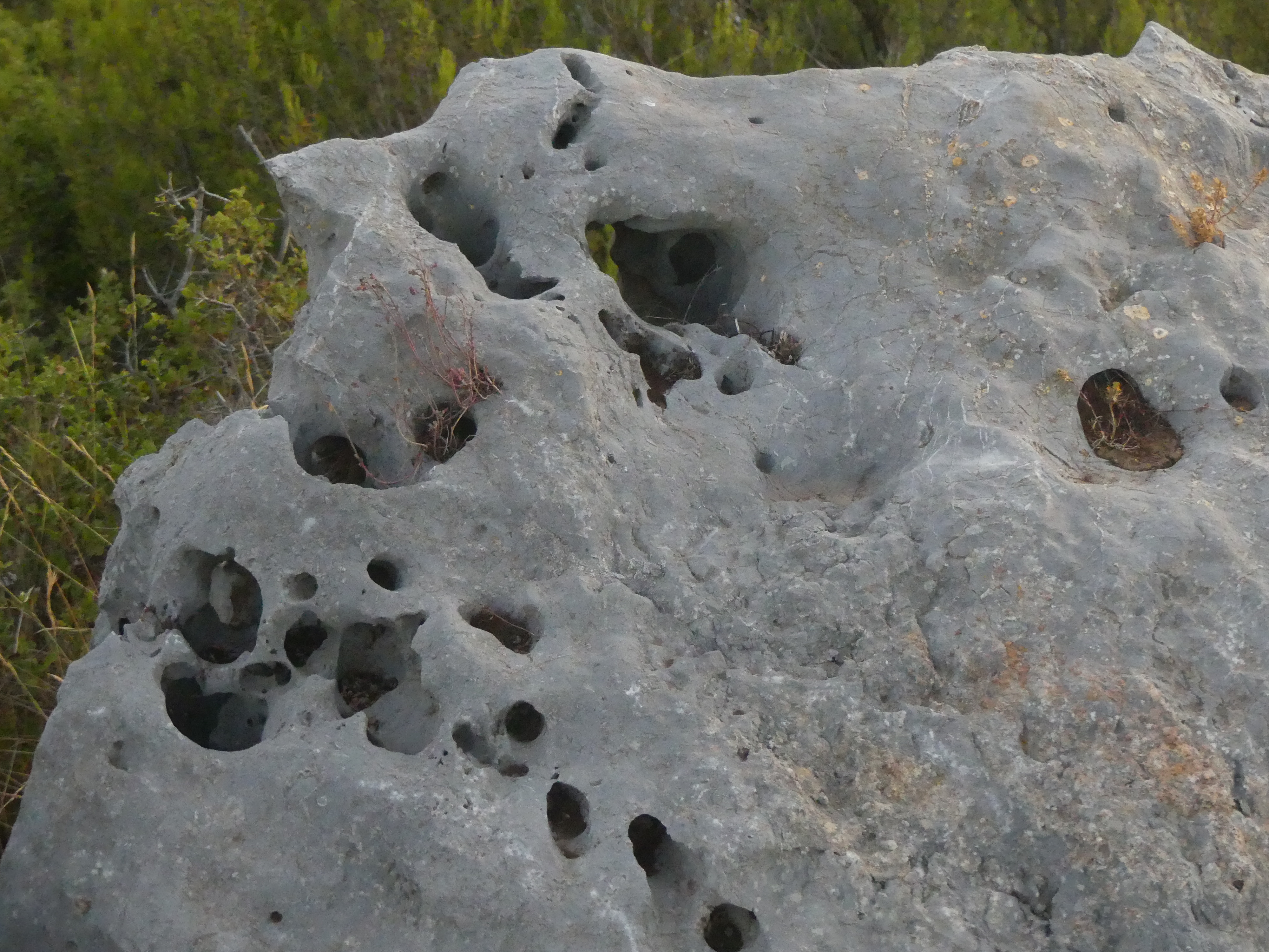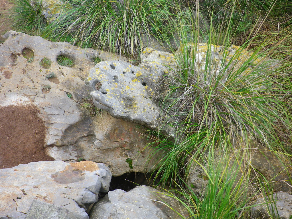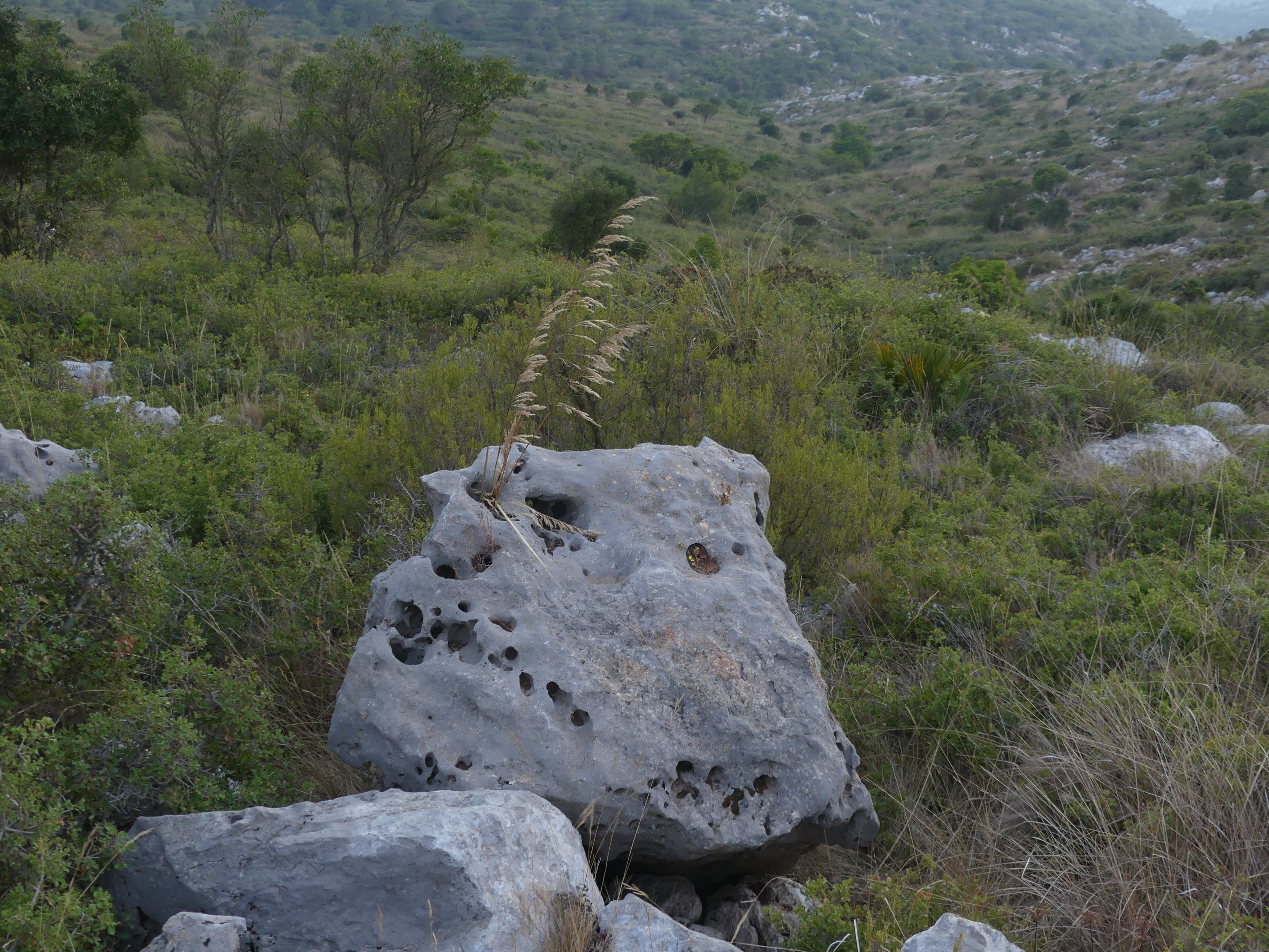 - Lapiaz (estrías -separadas por aristas cortantes irregulares- de muy escasa profundidad, que se originan en la superficie de las rocas calcáreas por la acción corrosiva de las aguas salvajes; cat. rascler)