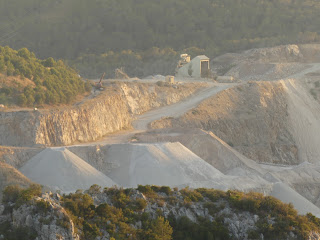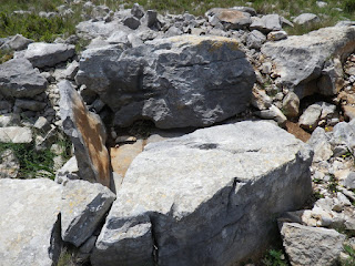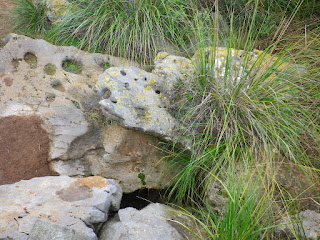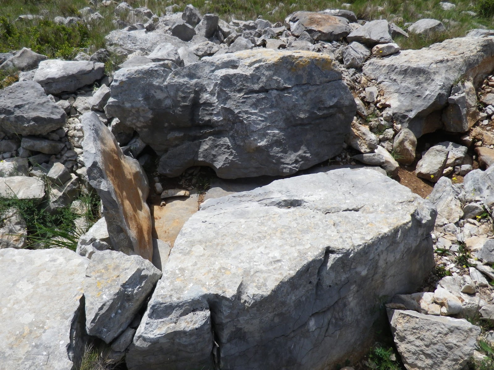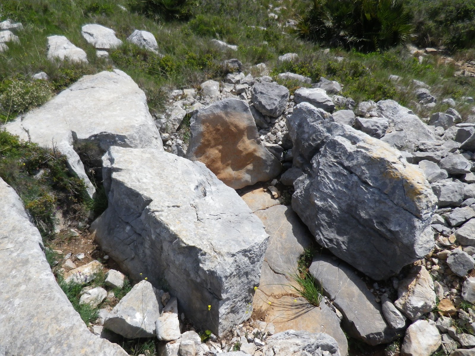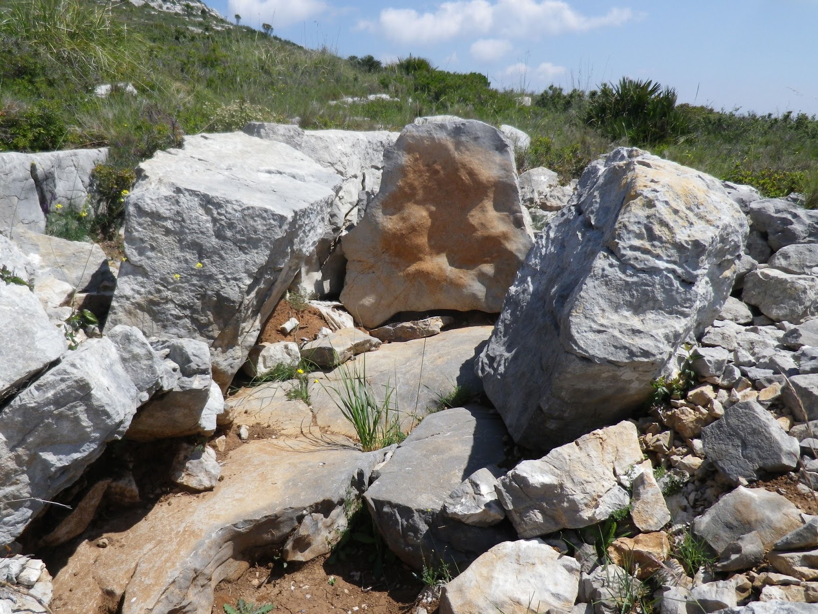 - Lapiaz (estrías -separadas por aristas cortantes irregulares- de muy escasa profundidad, que se originan en la superficie de las rocas calcáreas por la acción corrosiva de las aguas salvajes; cat. rascler)
