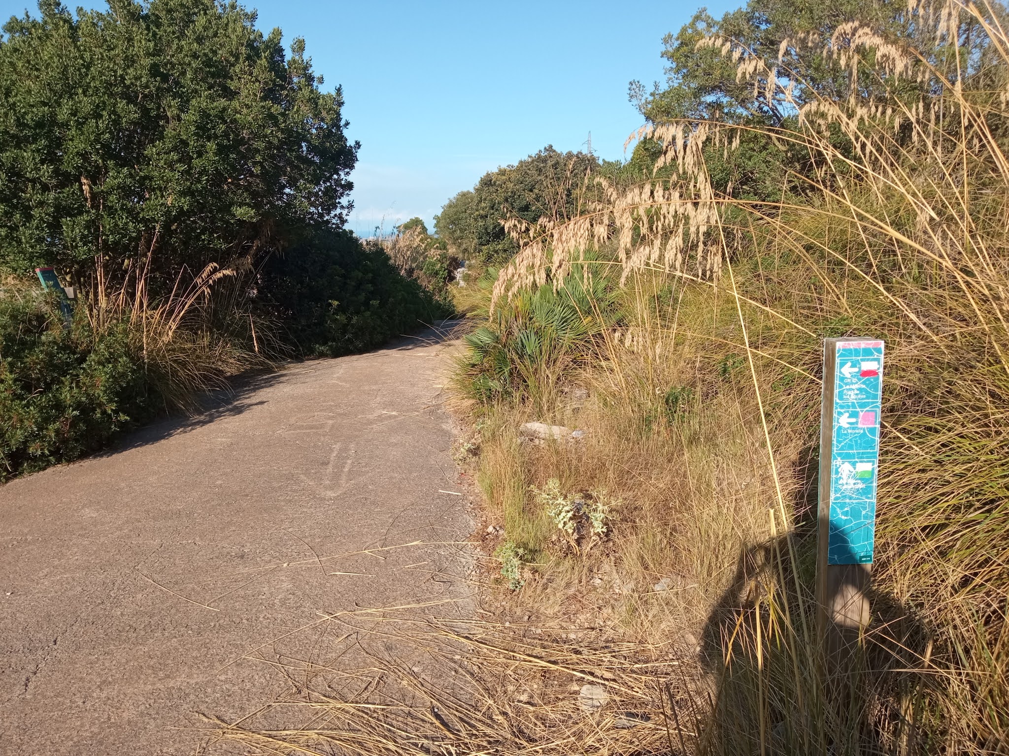 El camino comienza en el Castillo, sigue el camino de CAA Cal Ganxo y se dirige hacia el Coll de Santa Maria; pasa por la Roca Negra, desde ahi tambien se puede subir por encima de la carena del monte del Gall (197 metres), desde donde baja hacia otro punto desde el que se puede ascender hasta la cima del monte del Vinader (189 metres).