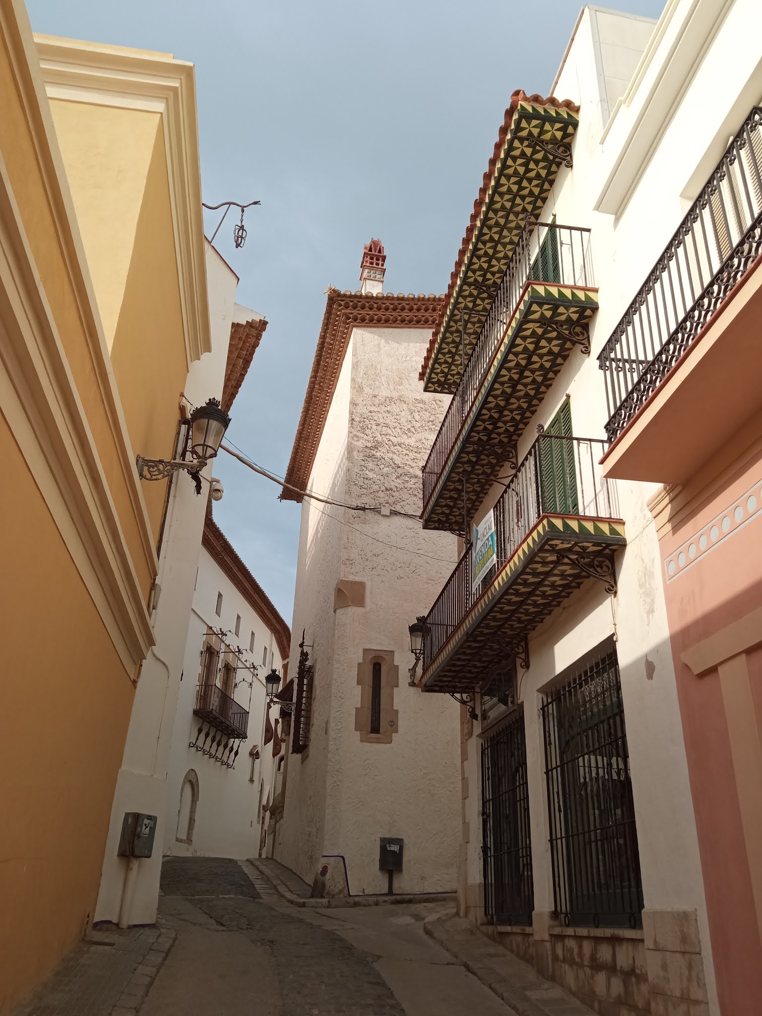 Esta calle, que es la más antigua de todo Sitges tiene muchísimas cosas que ver en los escasos 100 metros de longitud en forma de “S” que tiene, desde la susodicha muralla, puertas antiguas de la época, el Palacio del Rey Moro y ¡hasta una pequeña galería de arte local!
